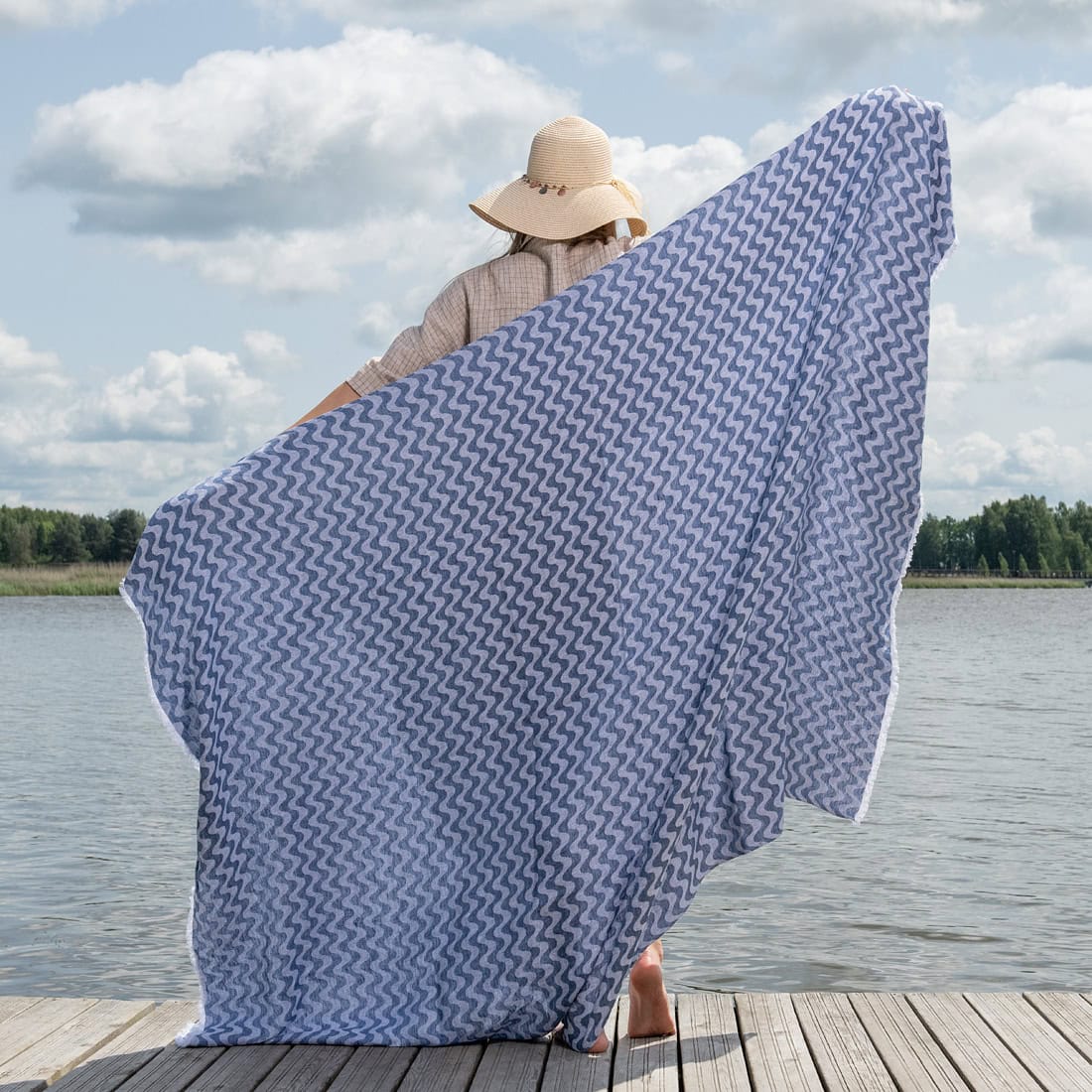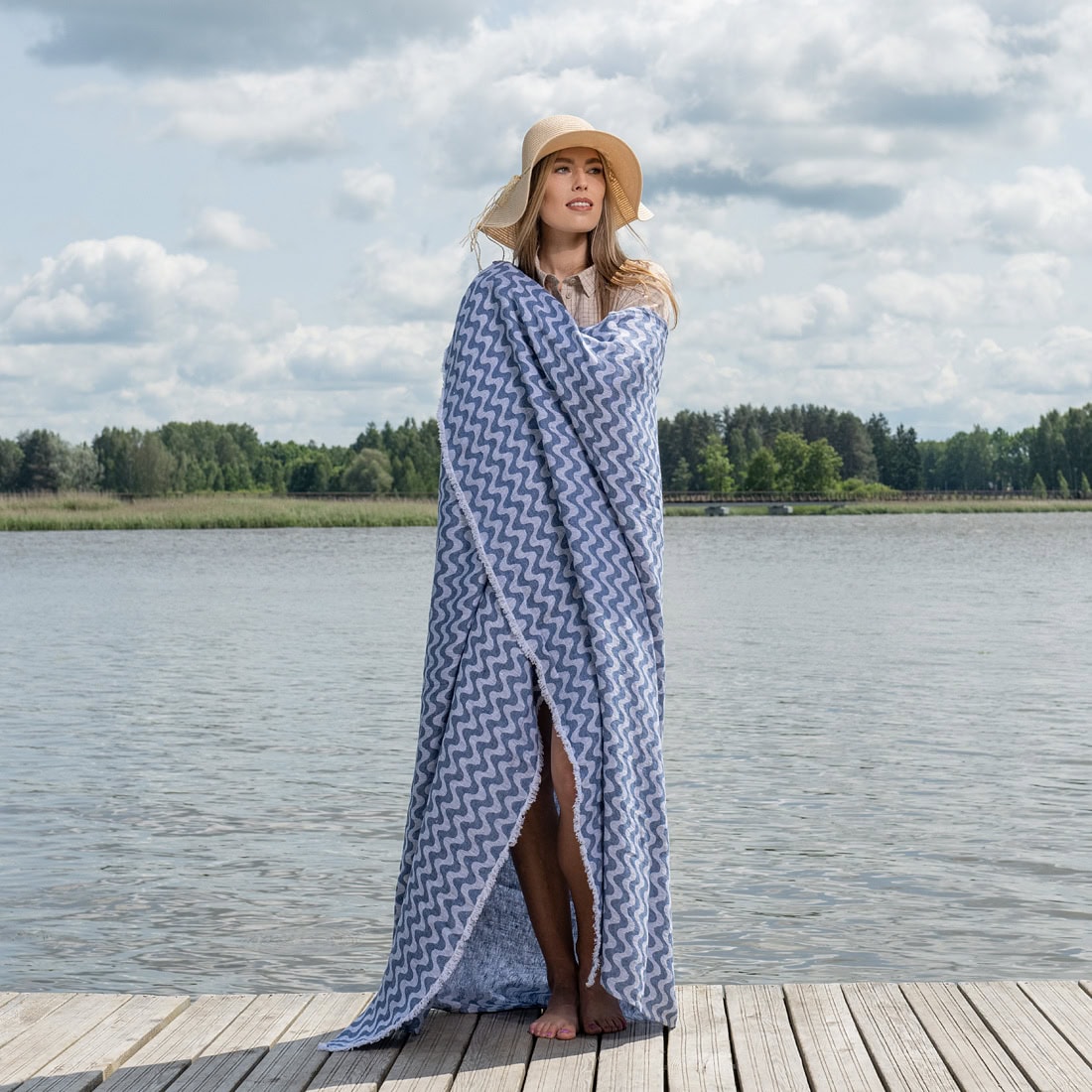 - Farbe: schneeweißes und jeansblaues Garn zusammengewebt