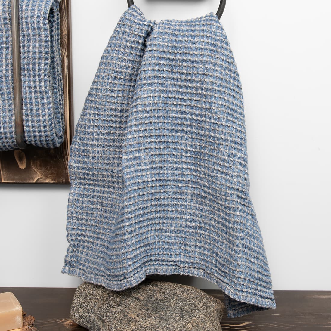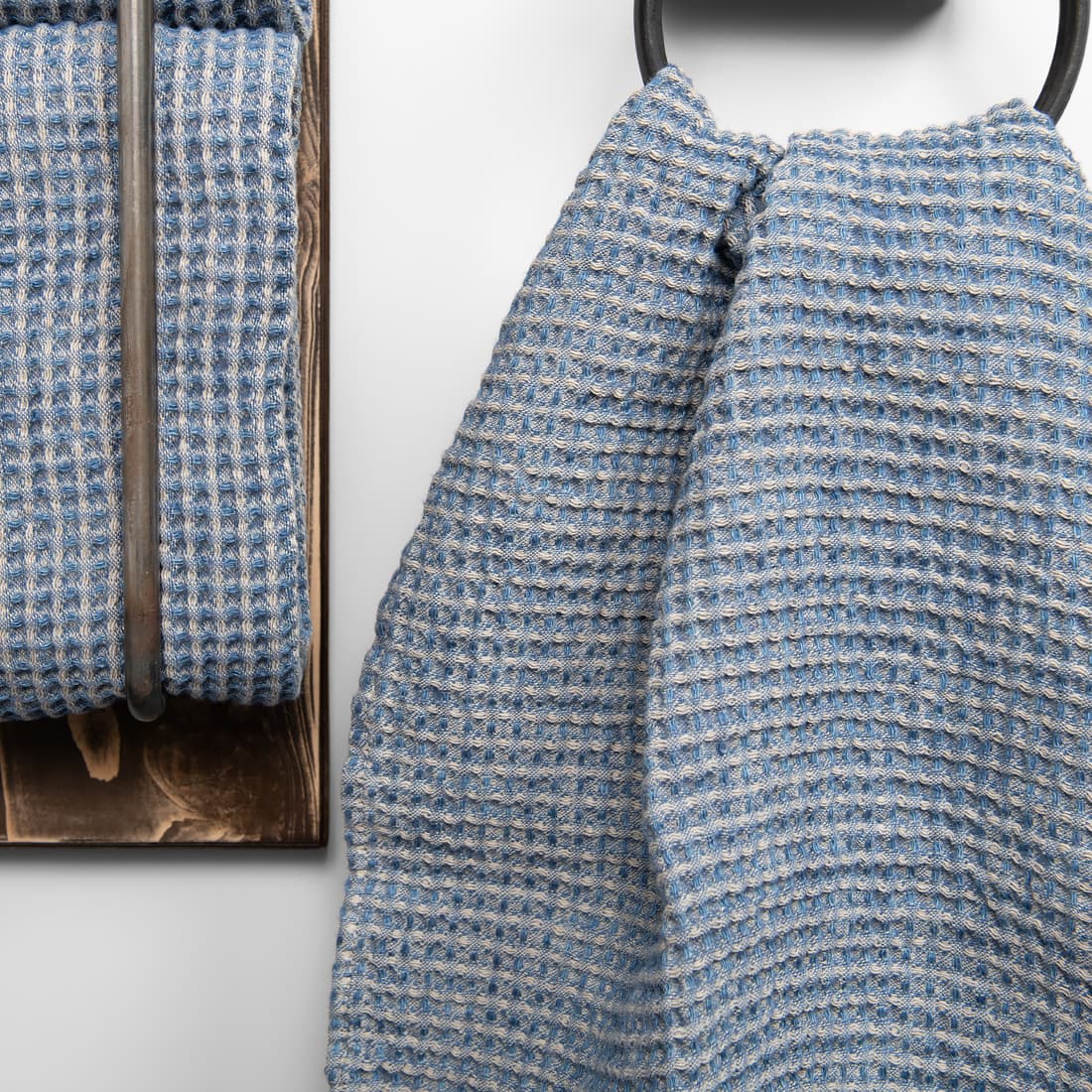 - Farbe: beiges und jeansblaues Garn zusammengewebt, Melange