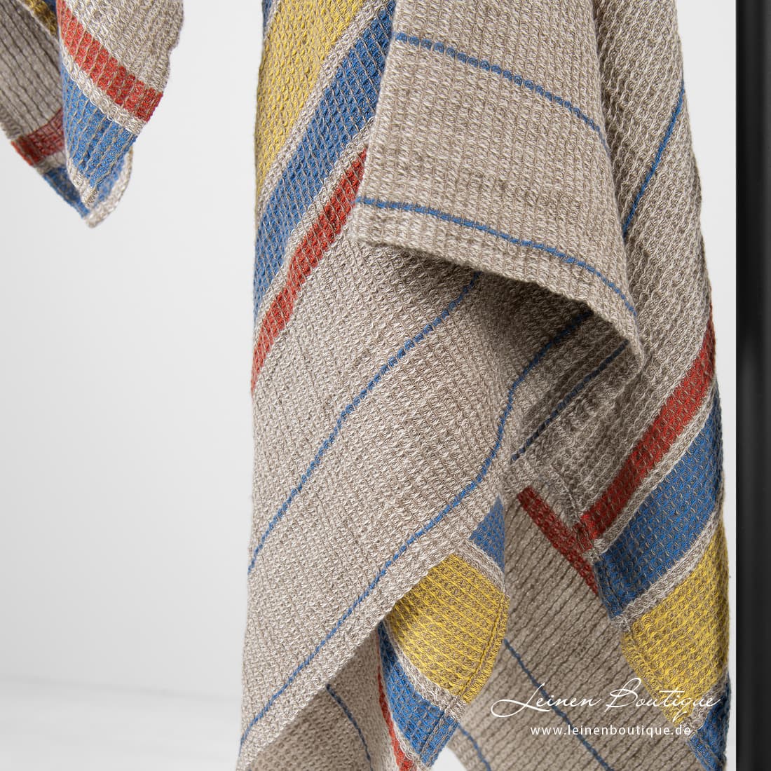 - Farbe: beiges, rotes, weißes, blaues und gelbes Garn zusammengewebt