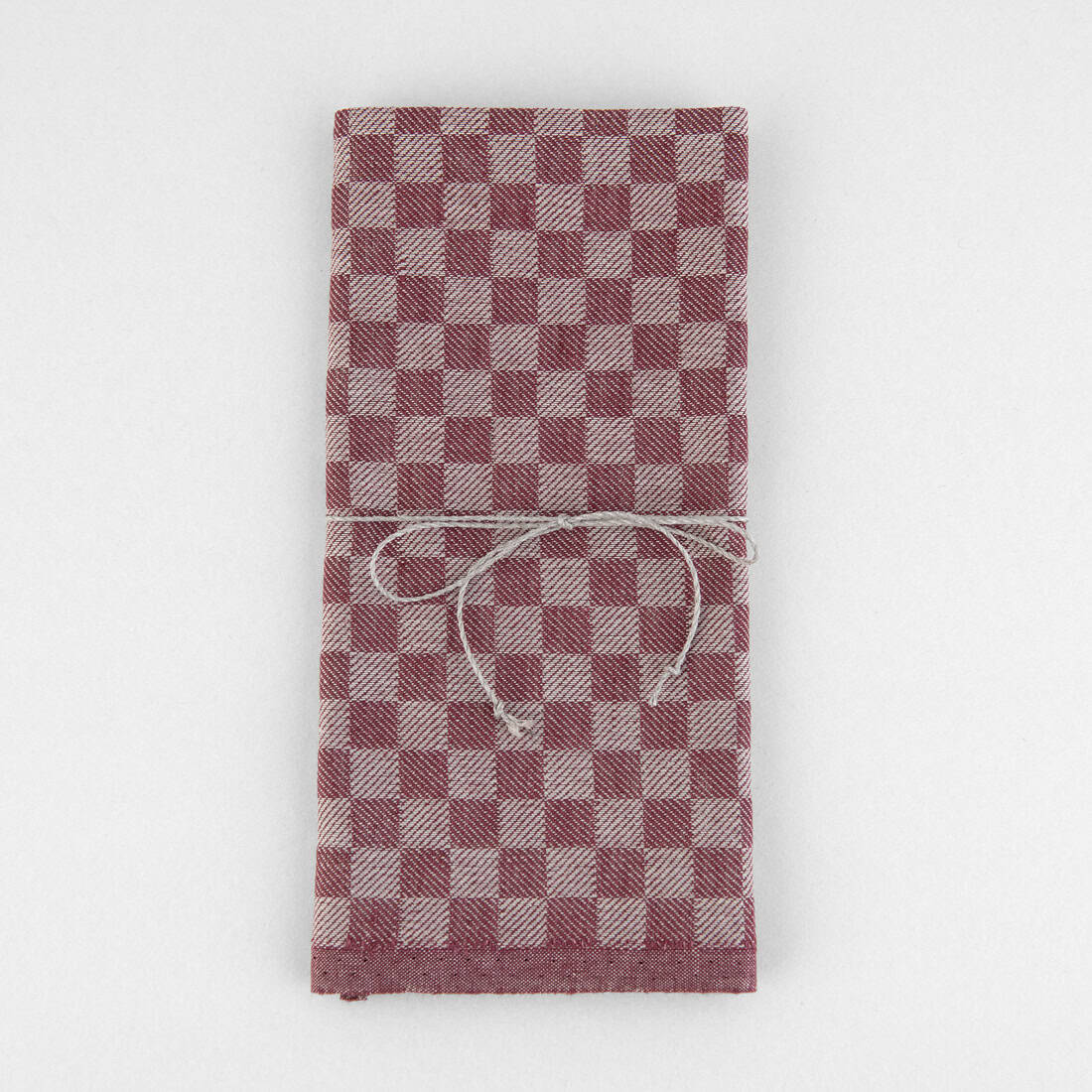 - Farbe: beiges (helles graubraunes) und kirschrotes (dunkelrotes) Garn zusammengewebt