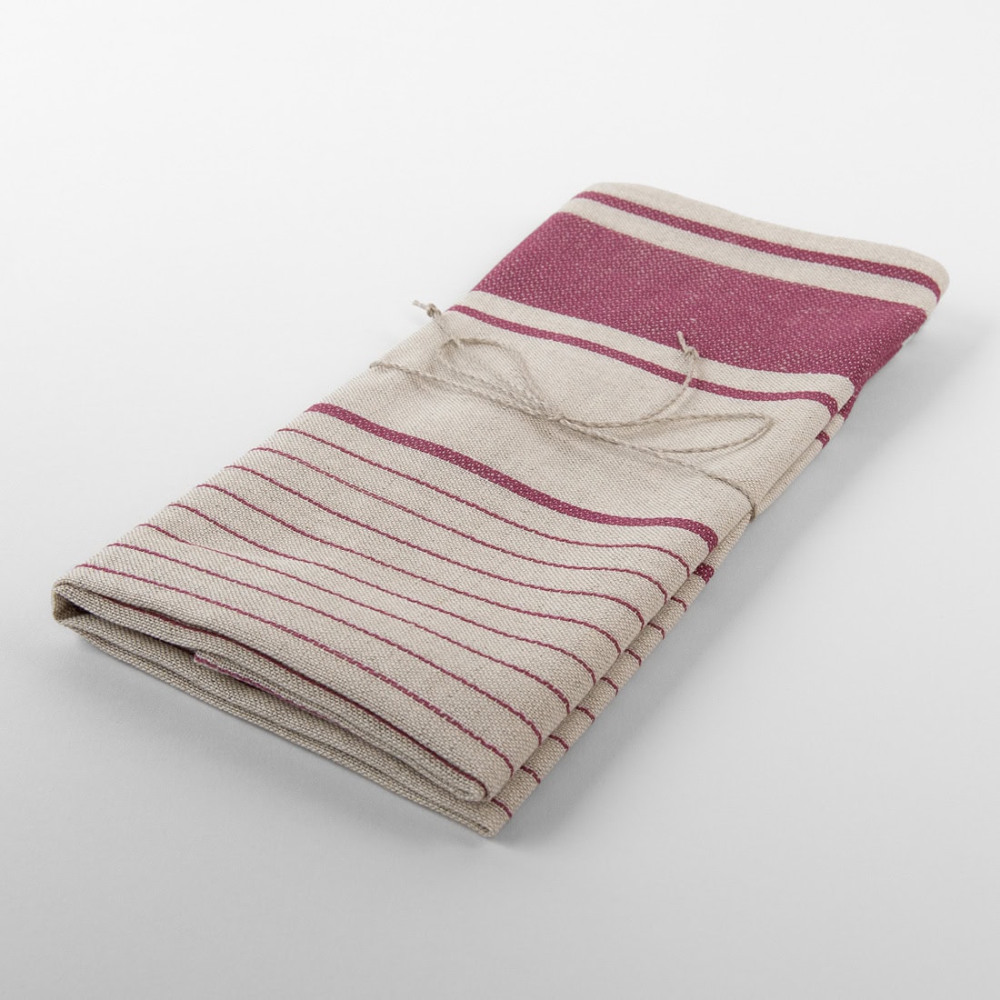 - Farbe: weißes, kirschrotes und naturgraues (ungefärbtes, bräunlichgraues) Garn zusammengewebt
