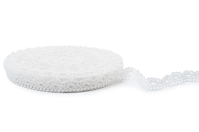 Leinenspitze / Borte schneeweiß aus 100% Leinen benutzen unsere Kunden für die Dekoration von Bettwäschen, Tischdecken, Gardinen und Kleidern. Breite 2cm.