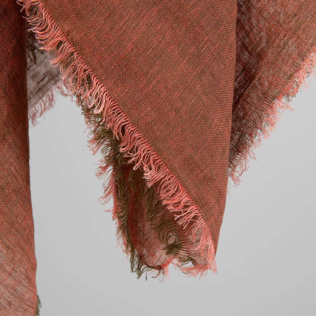 - Farbe: moosgrünes (braungrünes) und lachsrotes Garn zusammengewebt, Melange