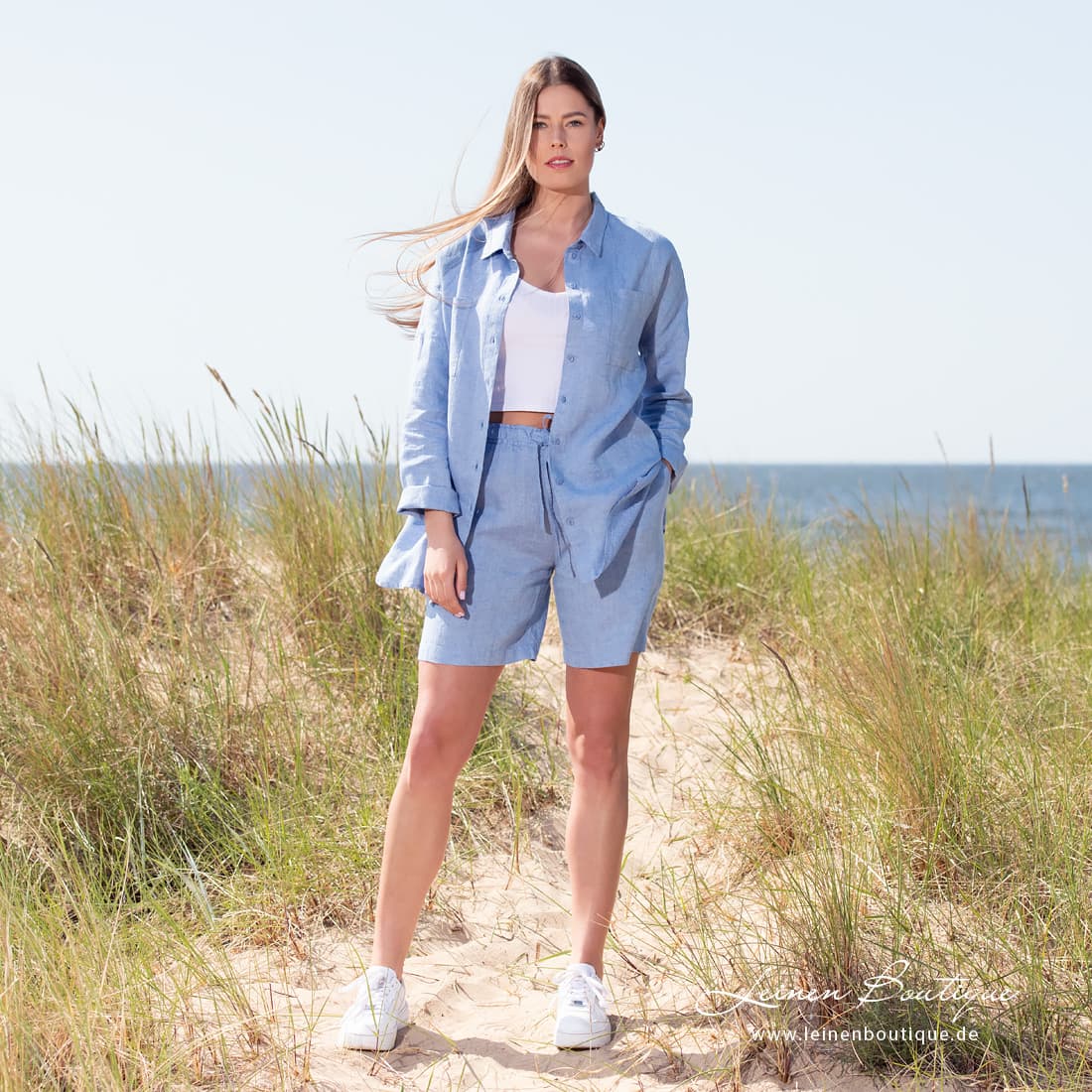 • DOLFI Leinenbluse blau mit Knopfverschluss