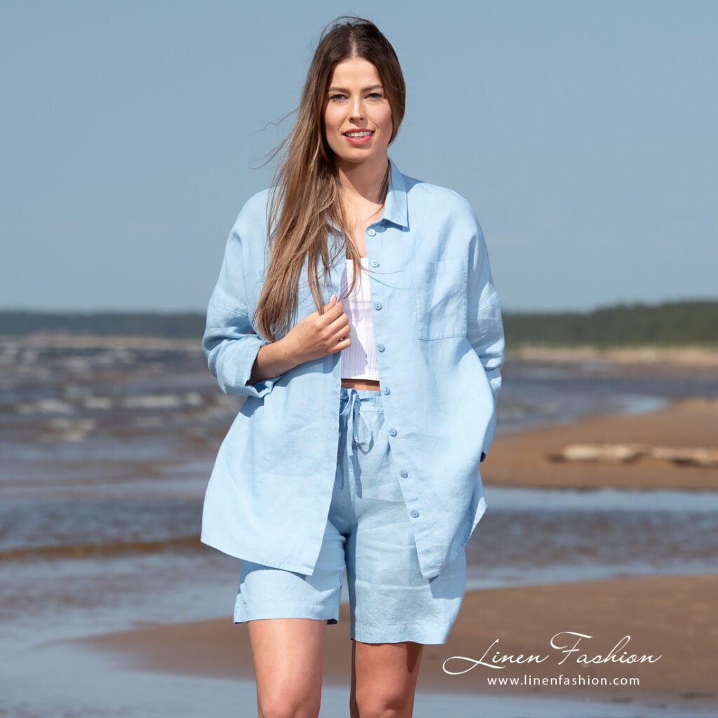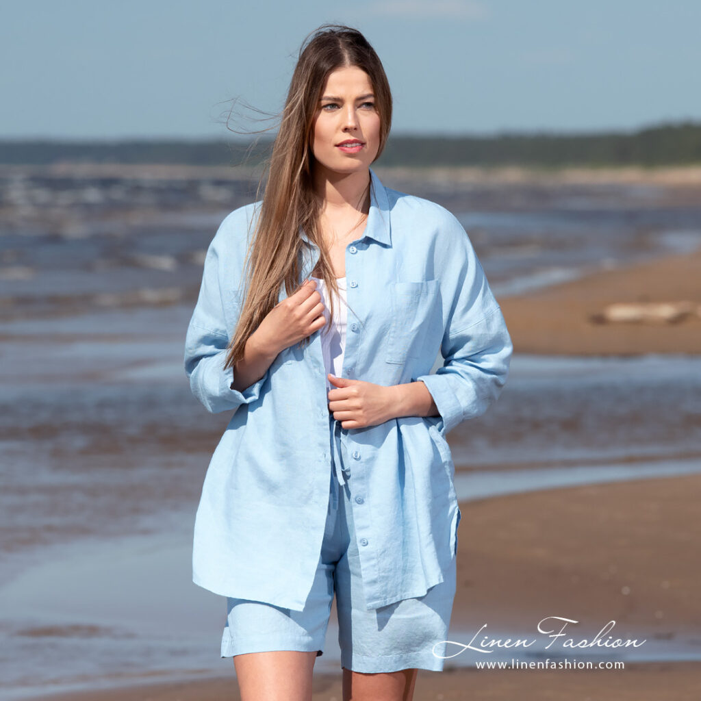 - Details: lange Ärmel, Knopfverschluss, Brusttaschen, seitliche Schlitze
