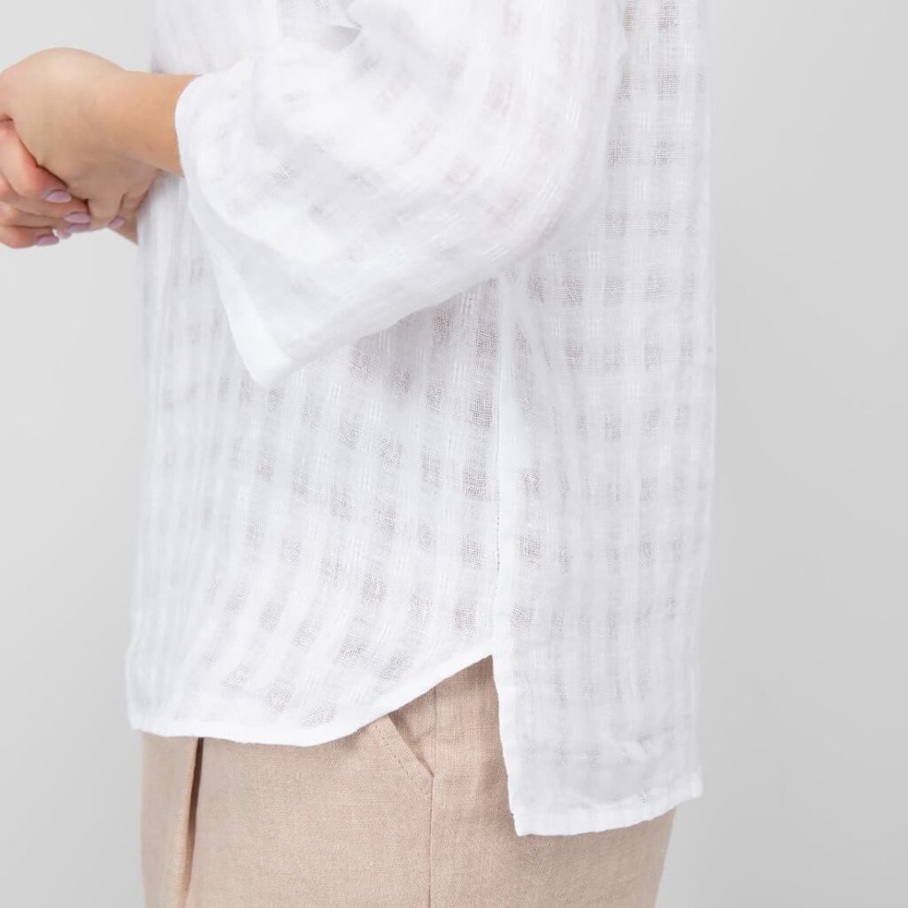 - Details: große Brusttasche links, längere Rückseite, seitliche Schlitze, abgerundeter Saum