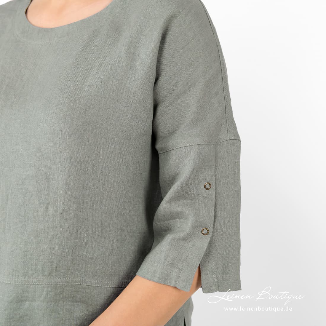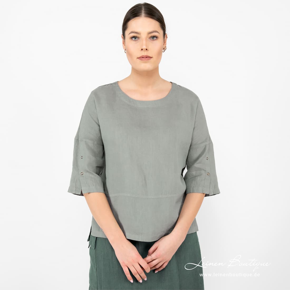 • Leinenbluse grüngrau mit 3/4 Ärmeln mit Druckknöpfen