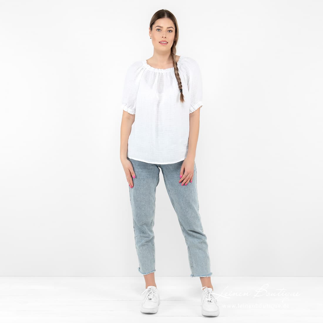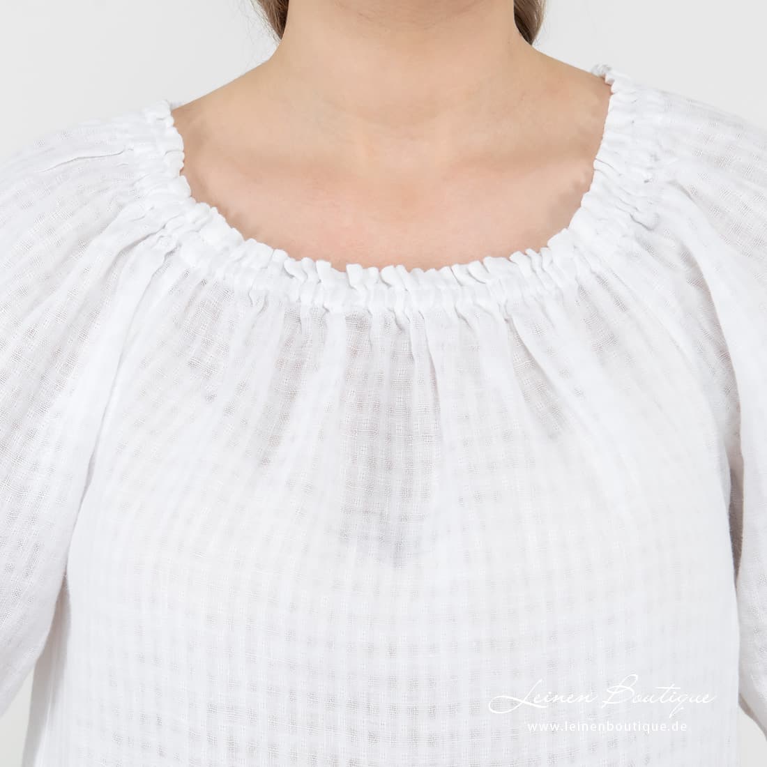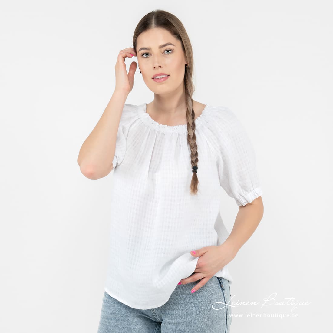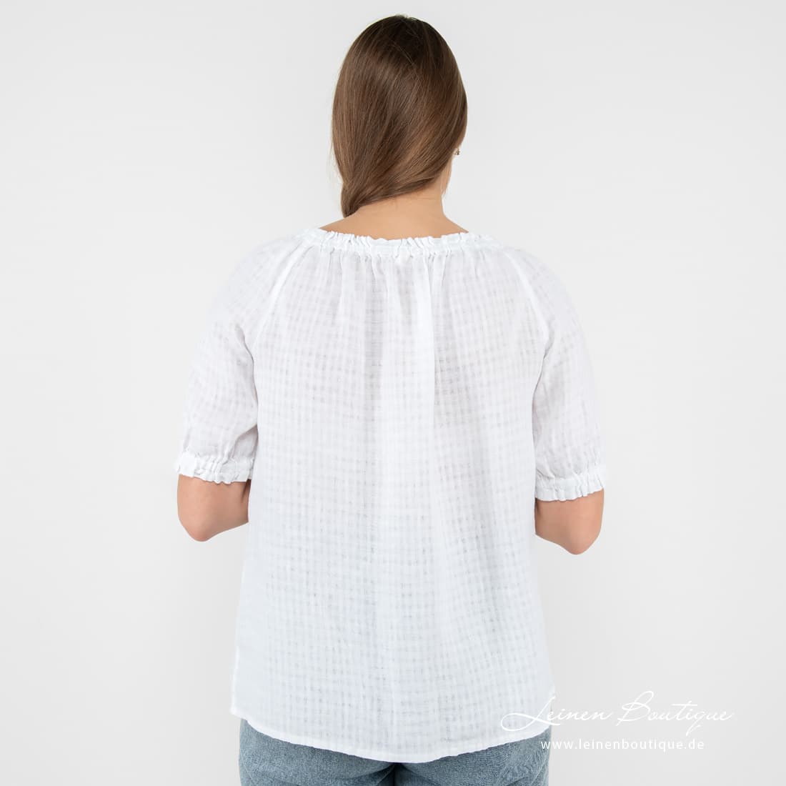 • MELISA Leinenbluse weiß mit Gummiraffung am Auschnitt