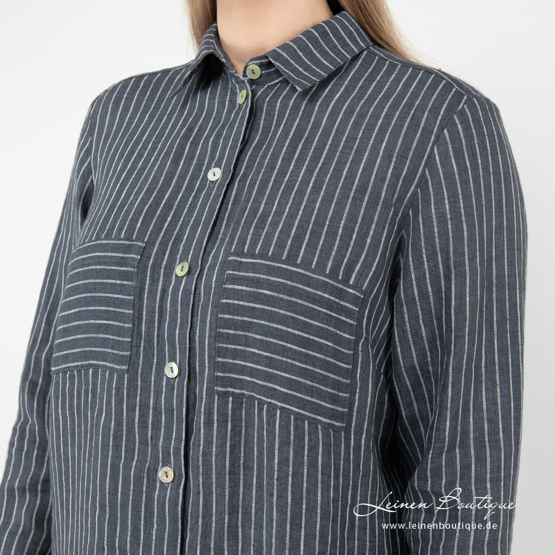 • Leinenbluse / Hemd dunkelgraublau-weiß gestreift