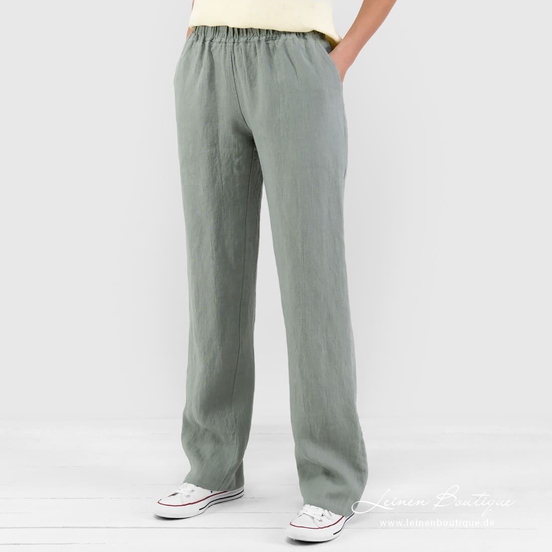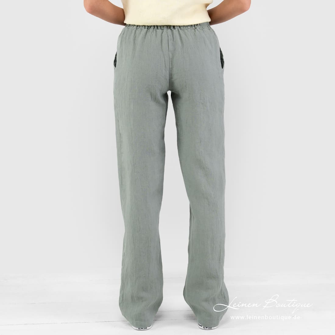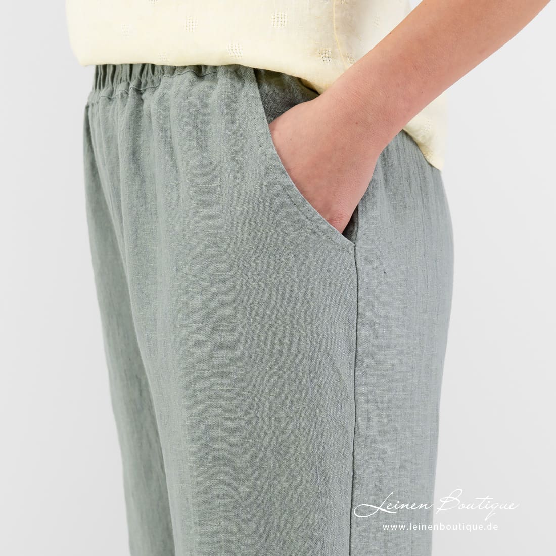 - Die Hose ist aus speziell gewaschenem, weichem Reinleinen genäht.