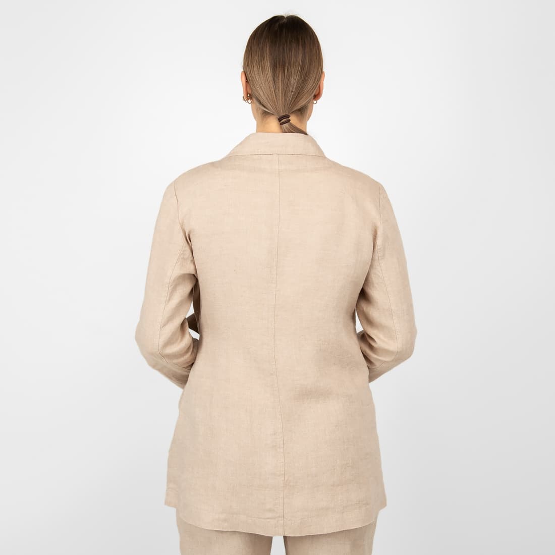 • Leinenjacke taupe in gerader lockerer langer Silhouette