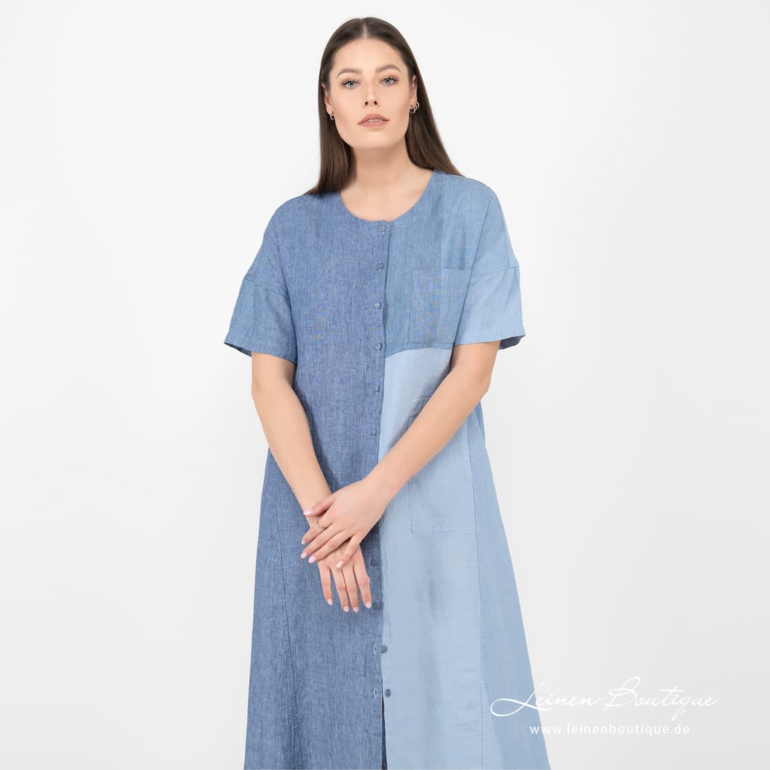 Bemerkung: das Kleid in lockerer Passform. Wenn Sie figurumspielende Passform lieber mögen, empfehlen wir eine Größe kleiner zu bestellen.