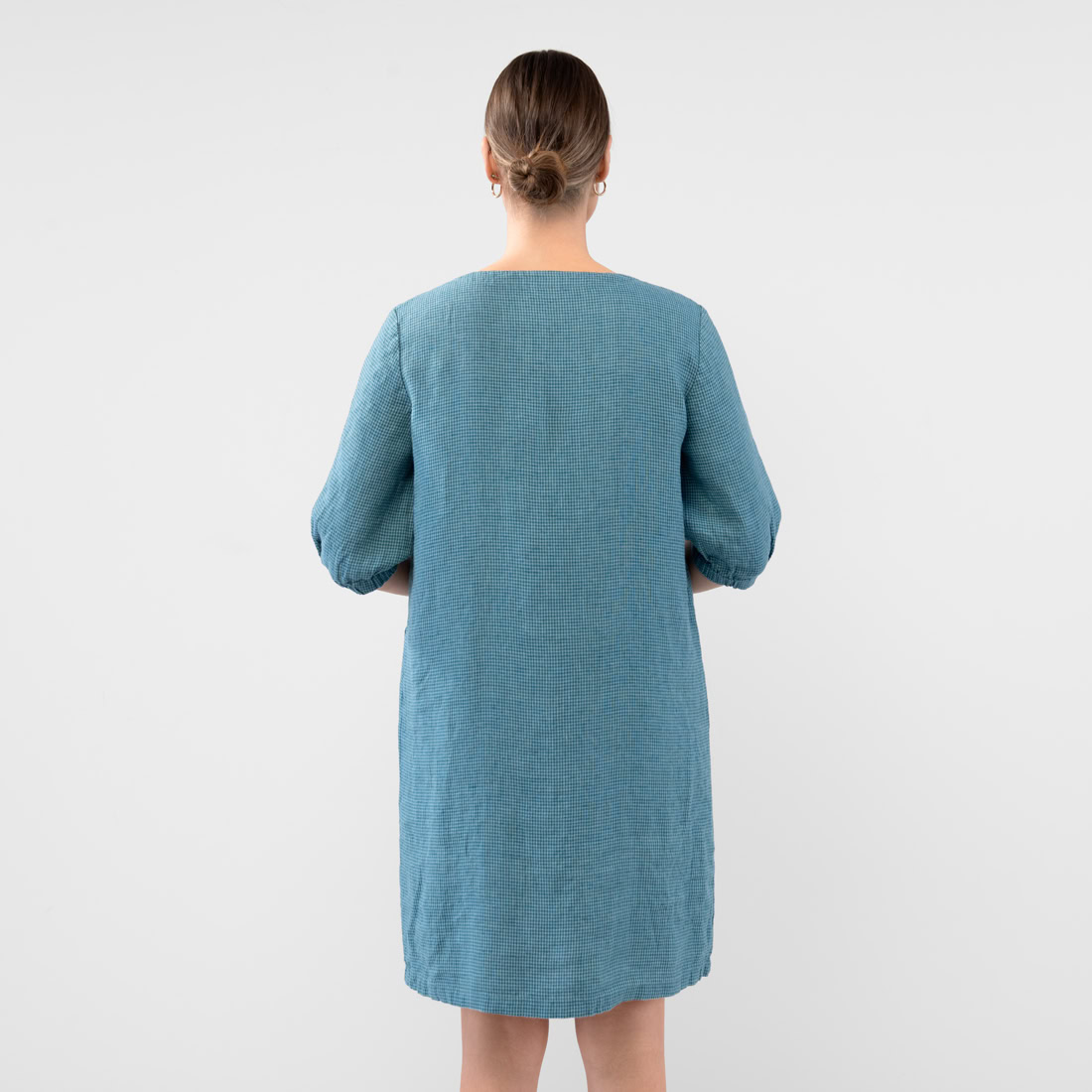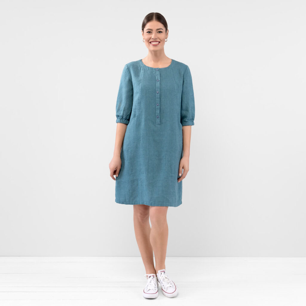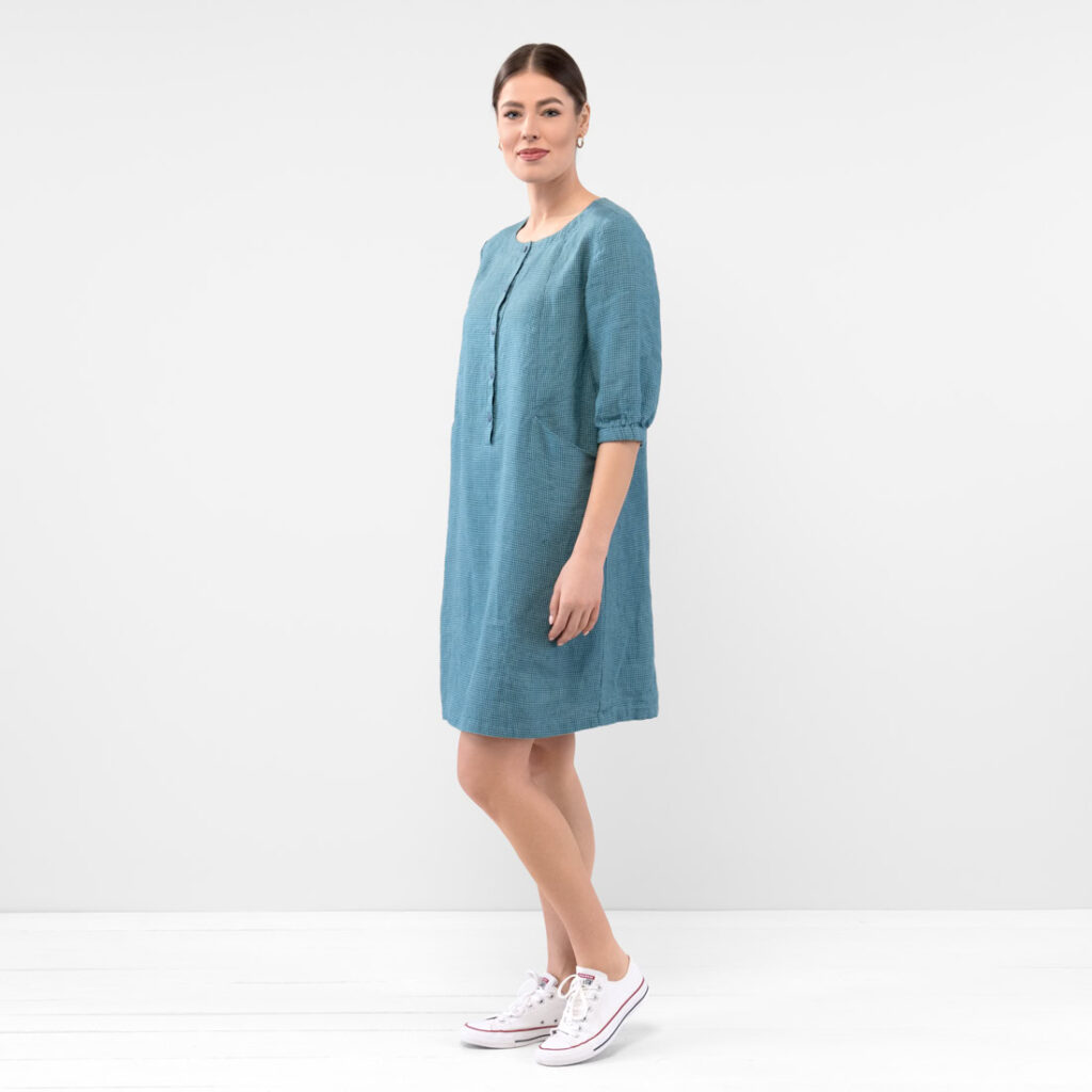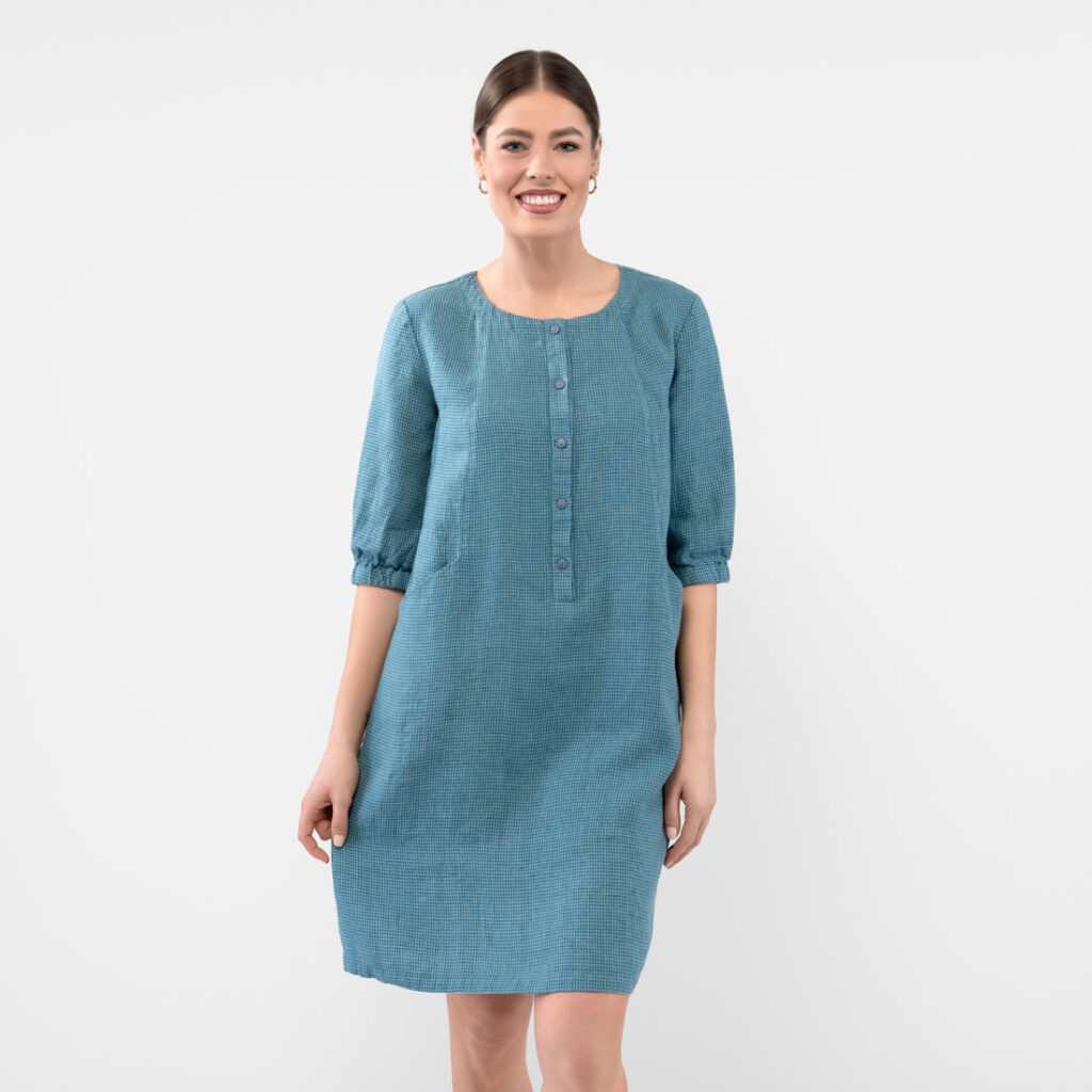 - Produktmodell: gerade Silhouette, lockere Passform, Länge oberhalb des Knies, 3/4 Puffärmel