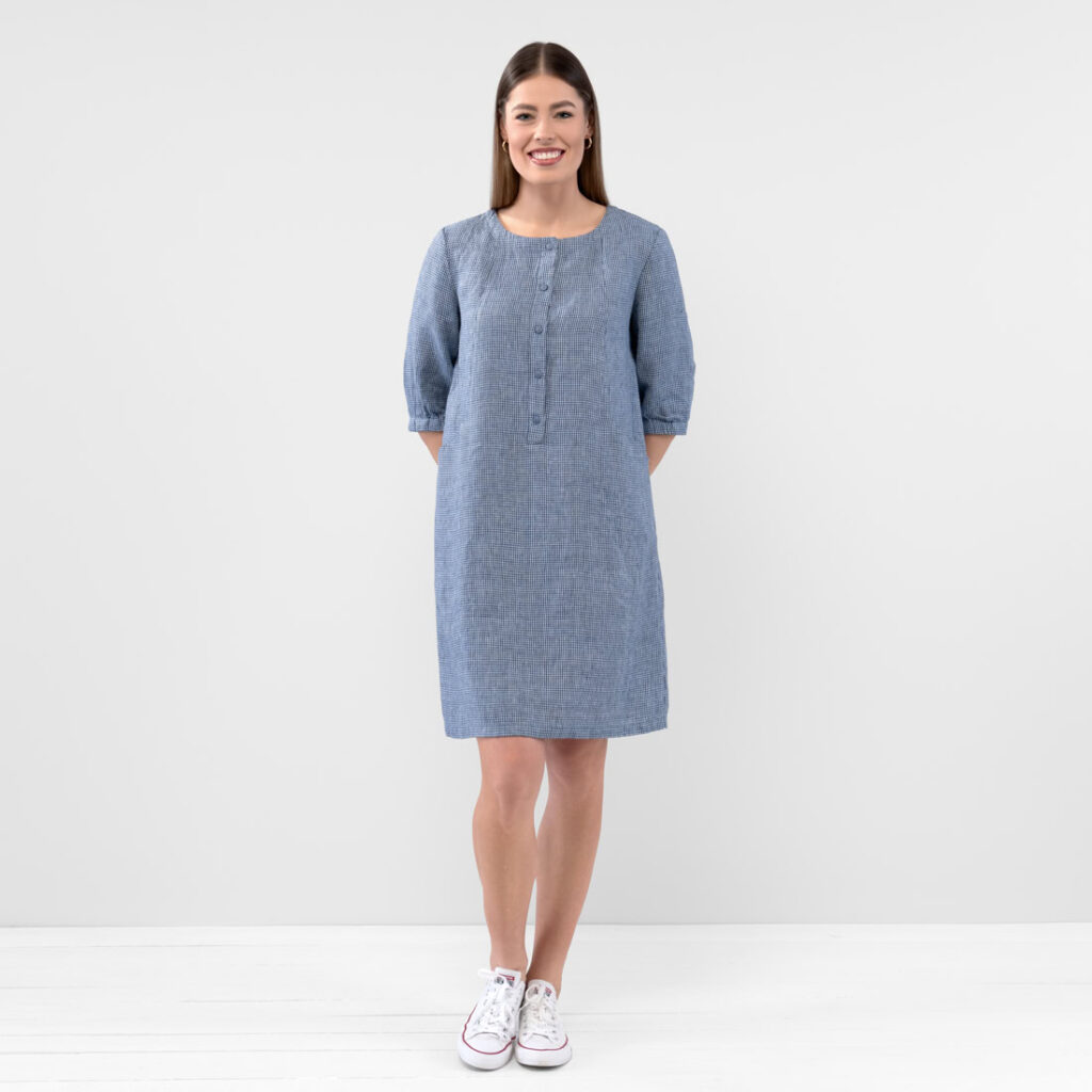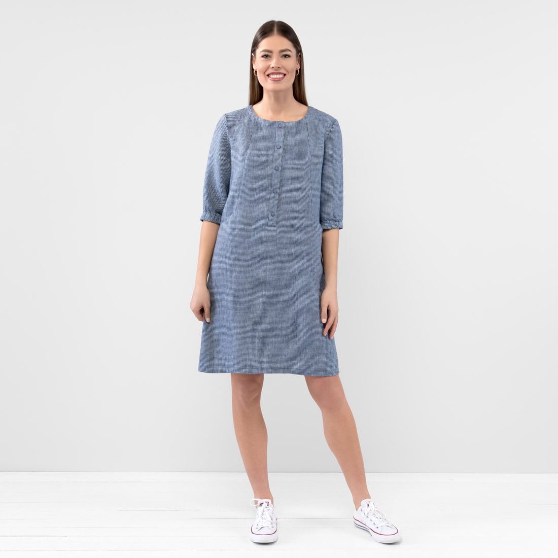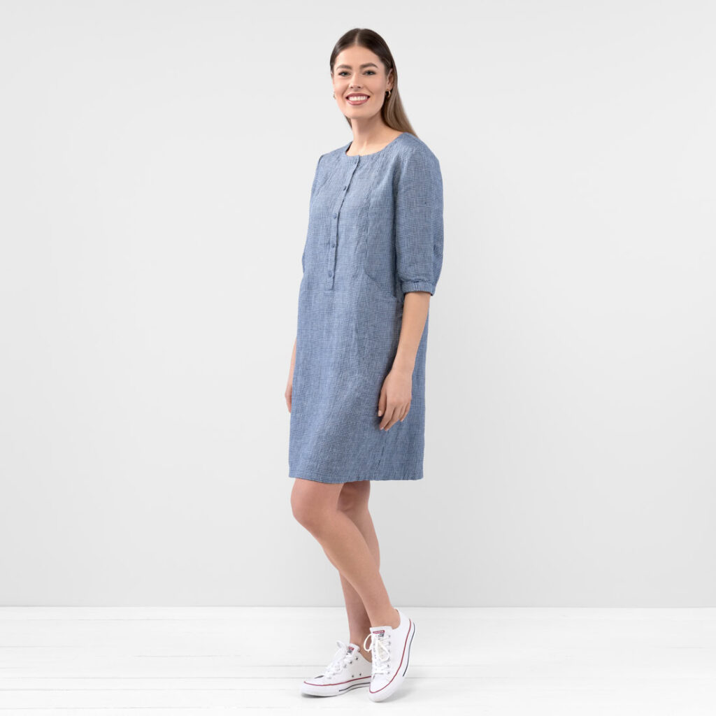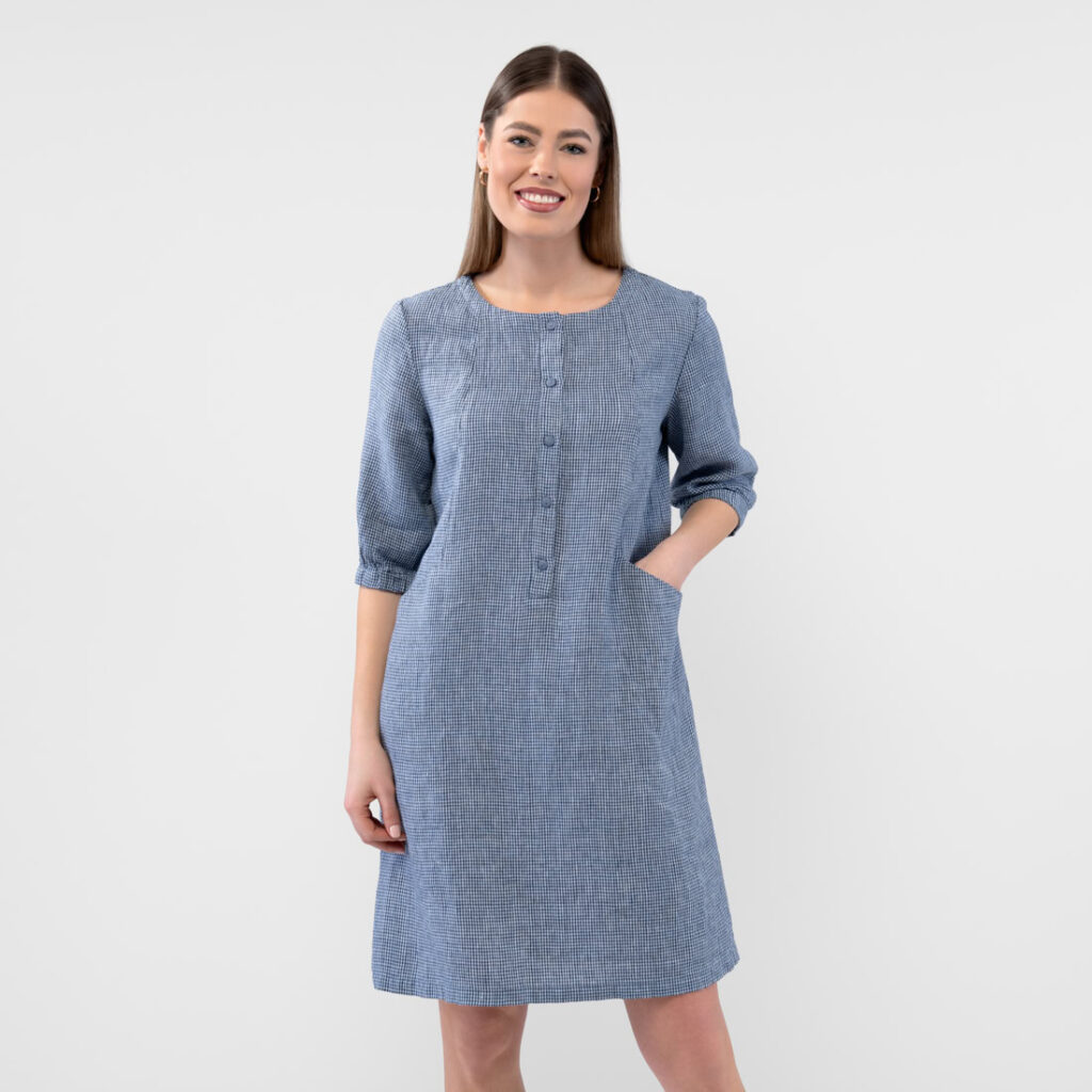 - Produktmodell: gerade Silhouette, lockere Passform, Länge oberhalb des Knies, 3/4 Puffärmel