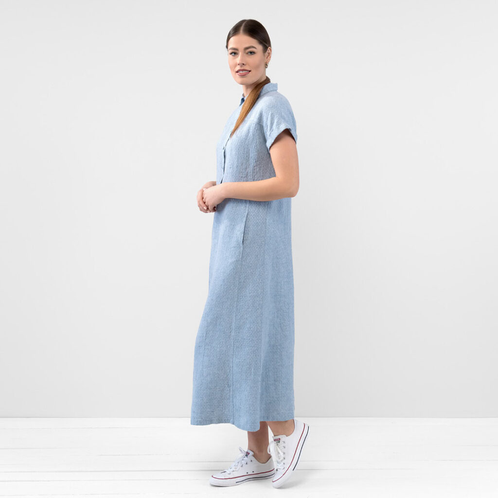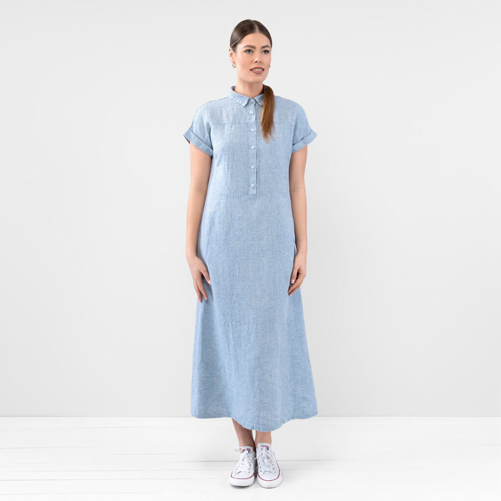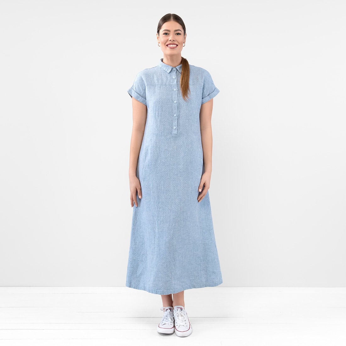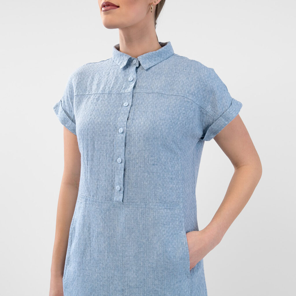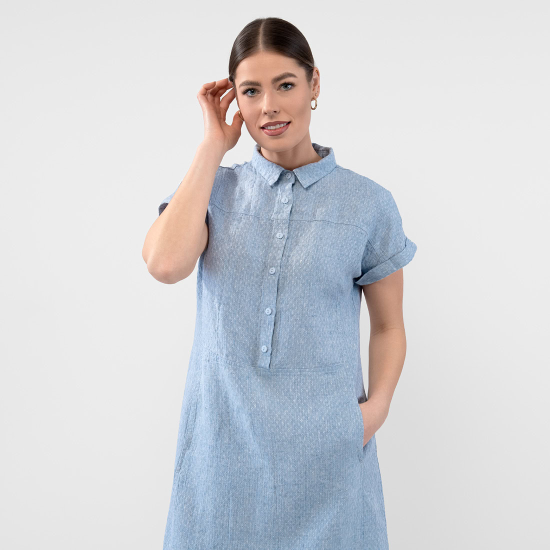 - Details: klassischer Hemdkragen mit halber Knopfleiste, zwei Seitentaschen