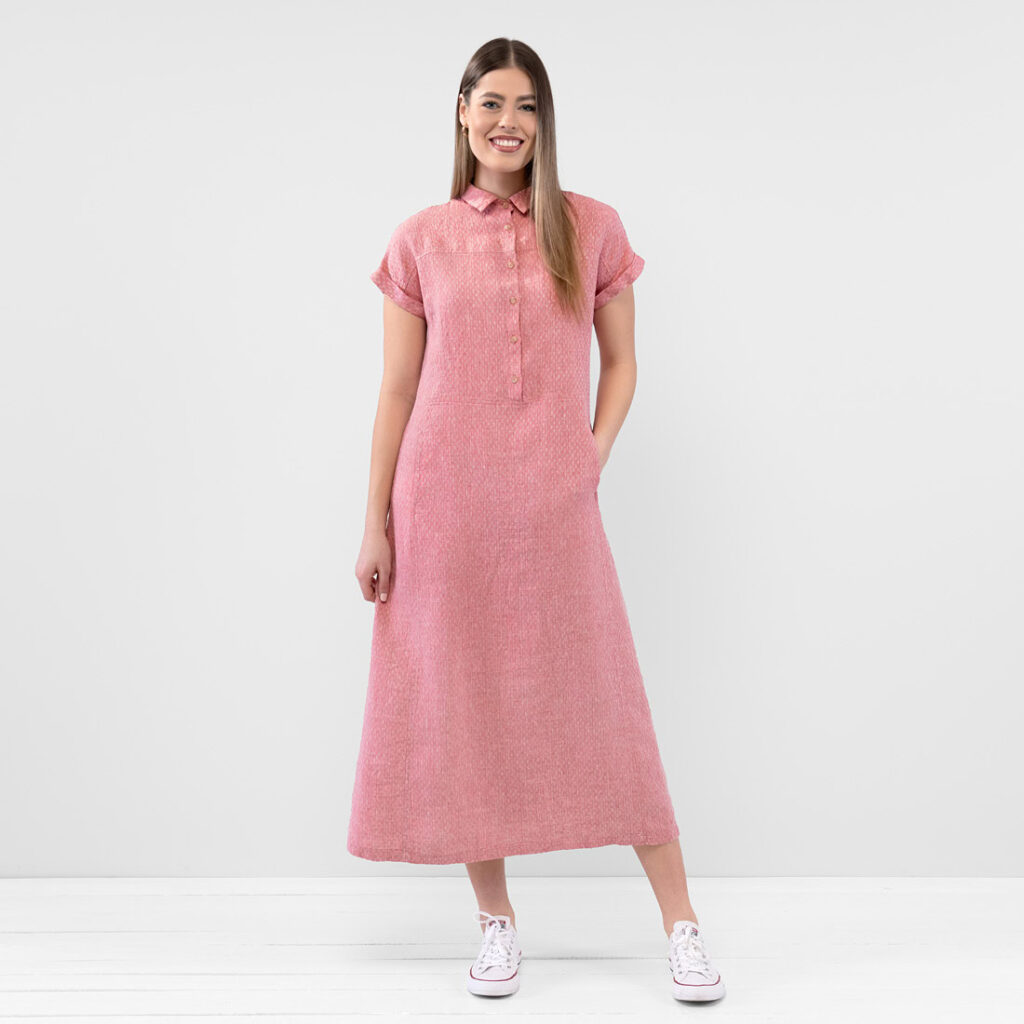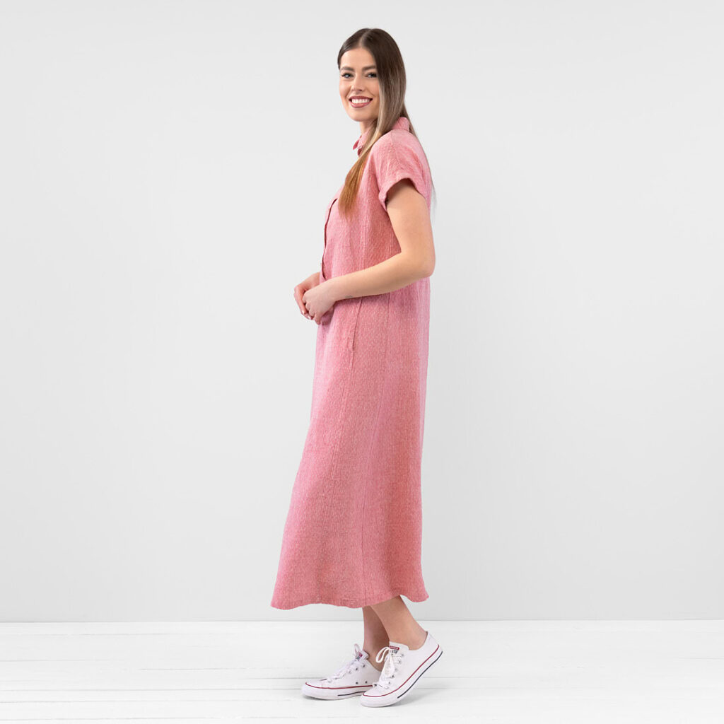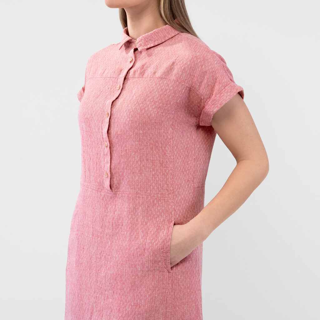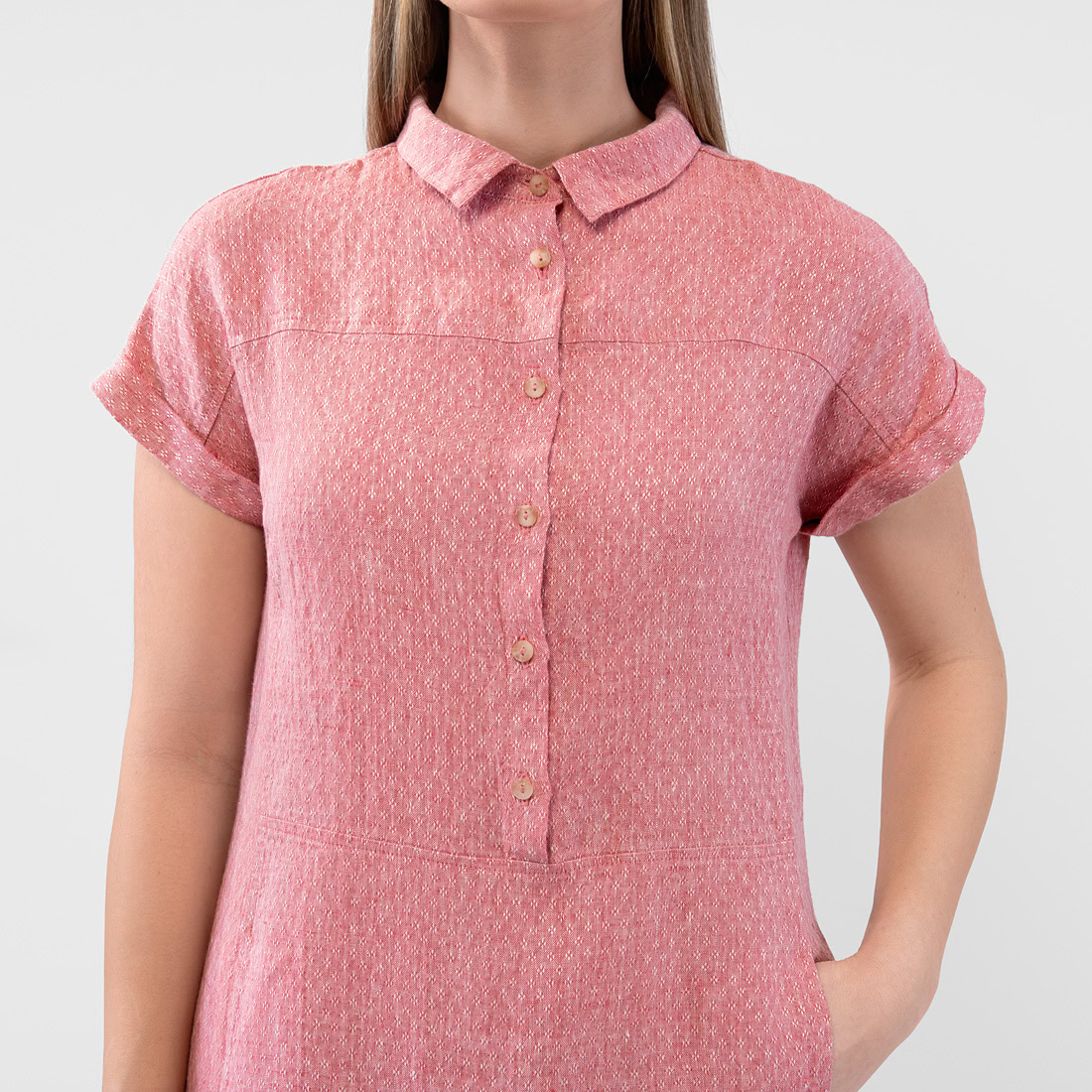 - Details: klassischer Hemdkragen mit halber Knopfleiste, zwei Seitentaschen