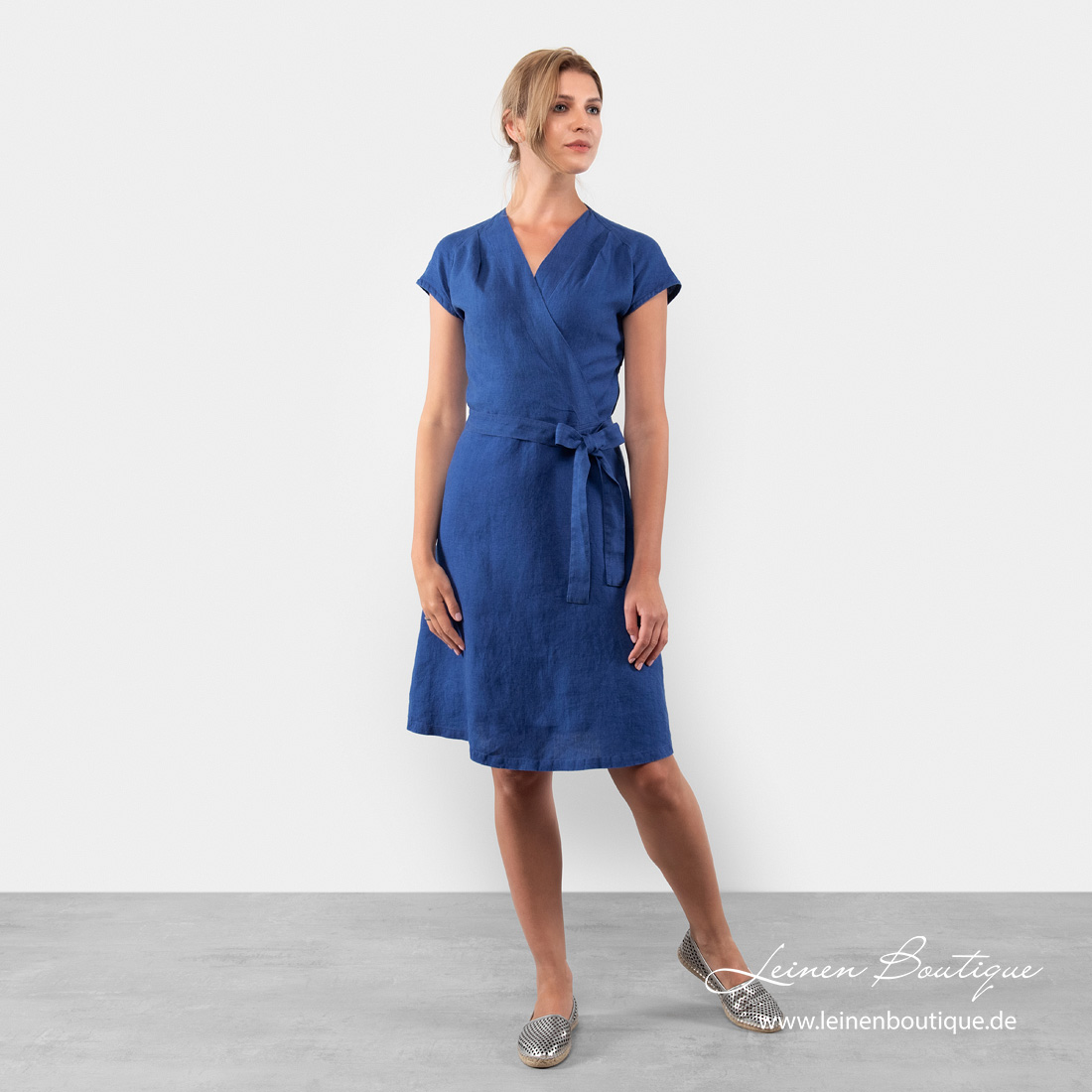 Intensiv blaues Leinenkleid. Wenn Sie ein Liebhaber der blauen Farbe sind, lässt das Kleid Sie bestimmt nicht gleichgültig. Der speziell gewaschene Stoff ist weich, hautfreundlich, es ist sehr angenehm, ein Kleidungstück aus solch einem Stoff zu tragen. Ideal für den Urlaub, aber auch bürotauglich!