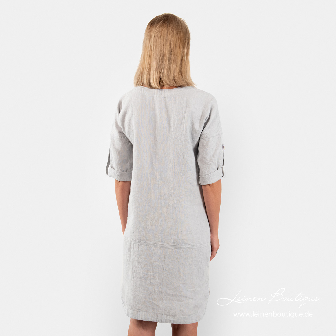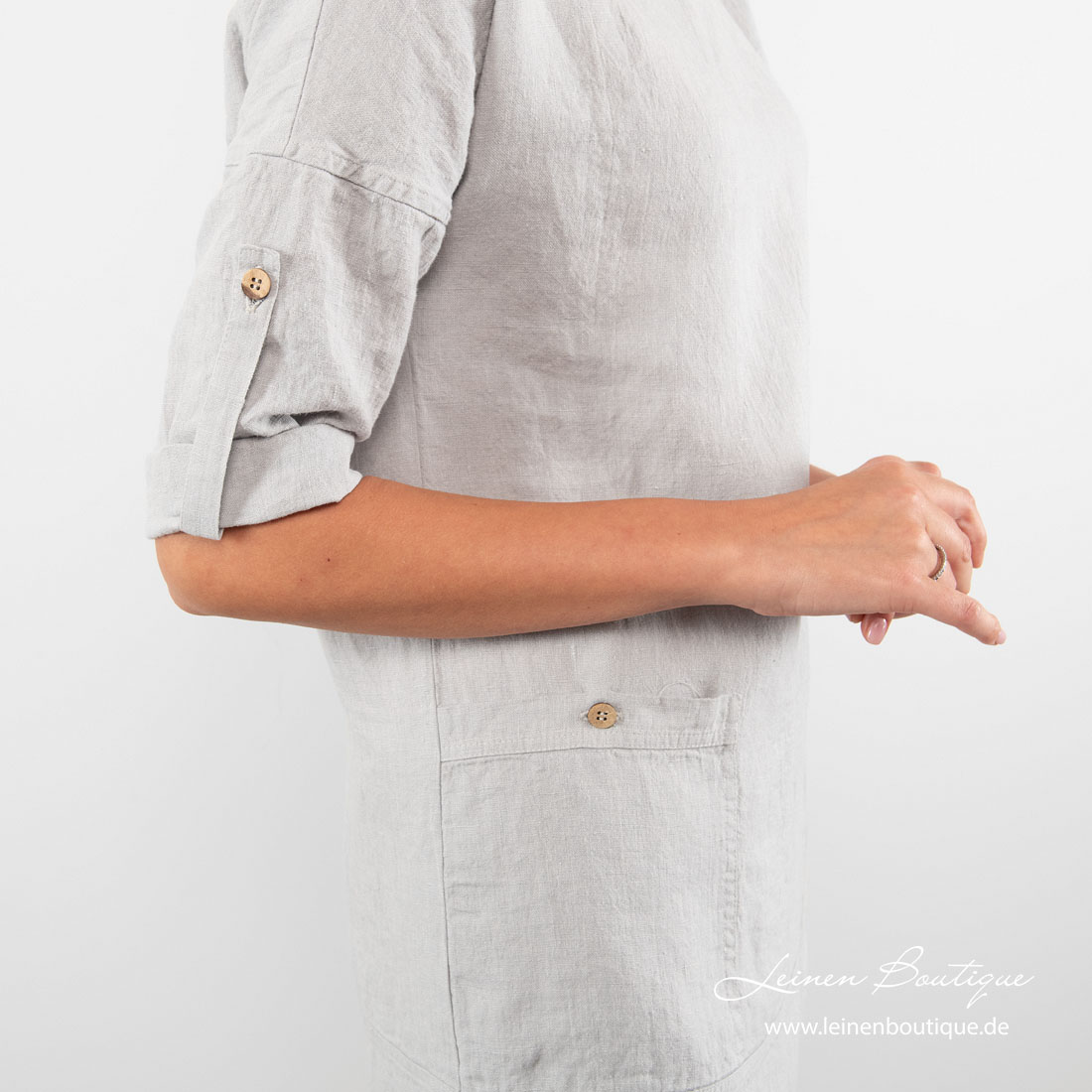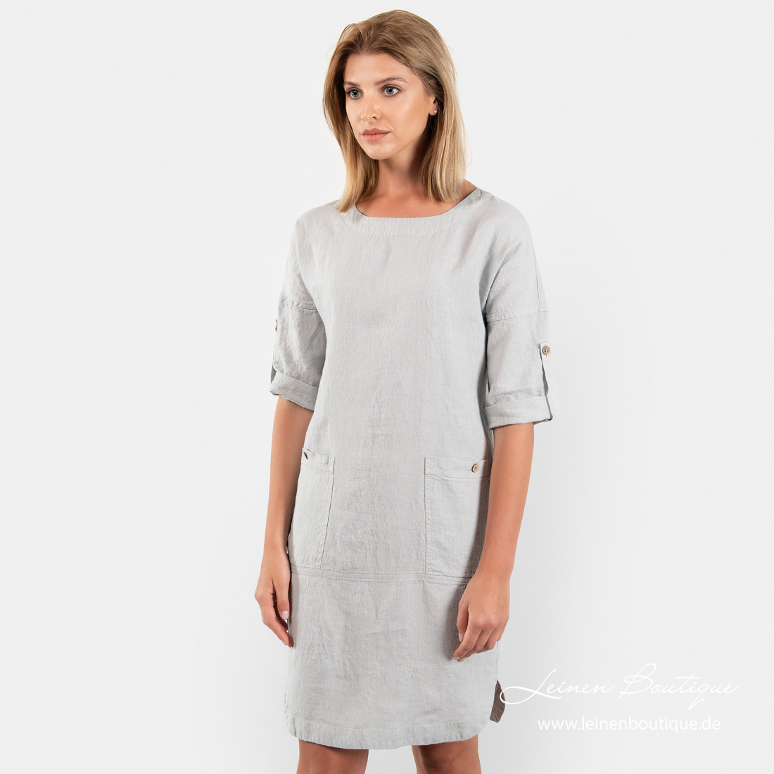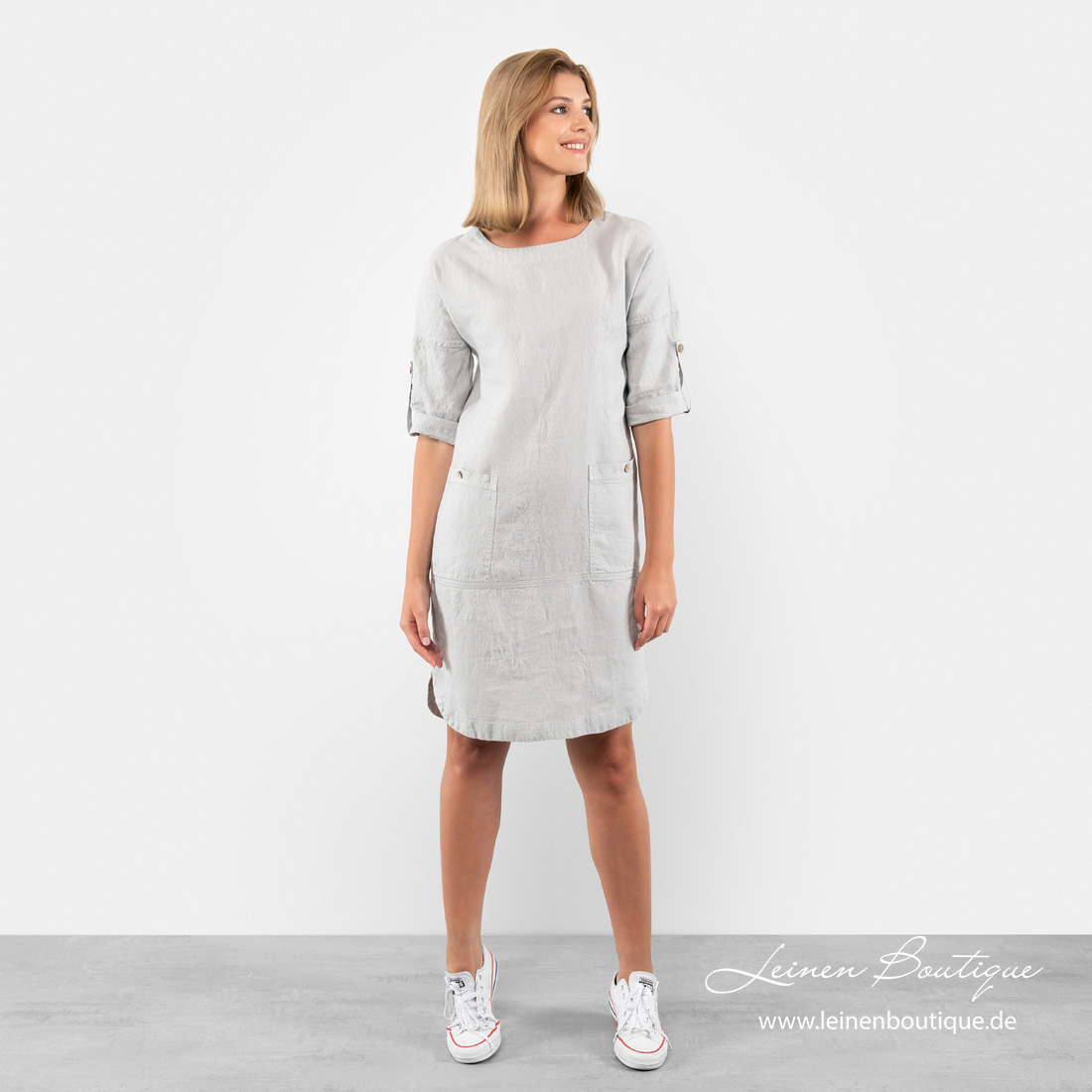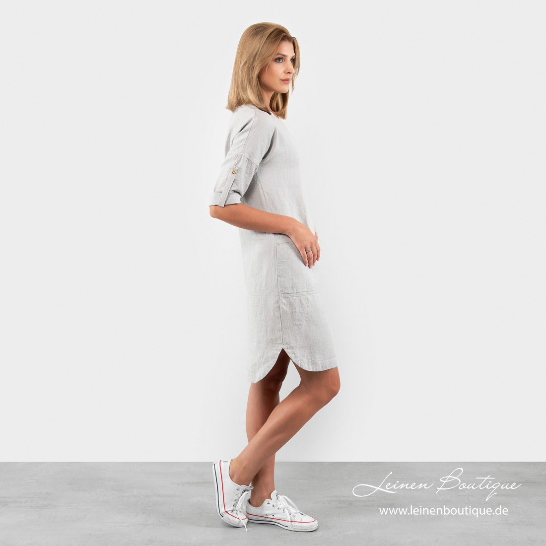 Hellgraues Leinenkleid ist besonders bequem, garantiert die Bewegungsfreiheit, passt ideal für die aktive Freizeit. Mit dem Leinenkleid ist Ihr Freizeit-Look bestimmt stylish!