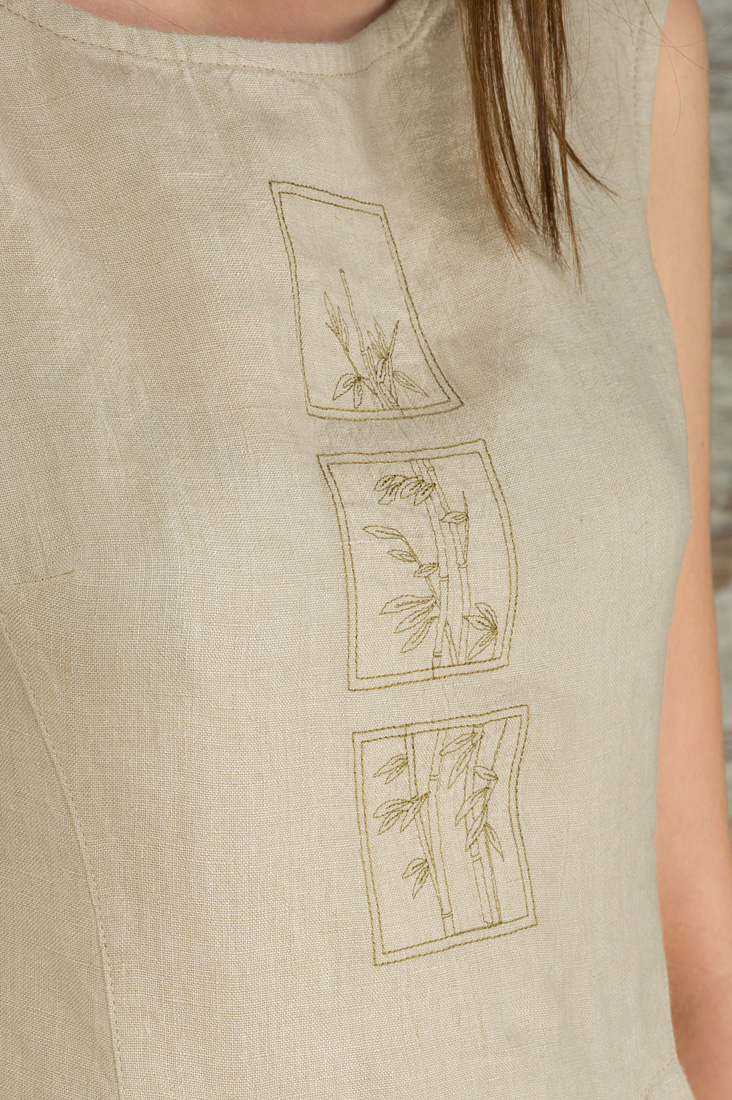 - Mit Bestickung dekoriert - Bambus-Motiv in kleinen Quadraten.