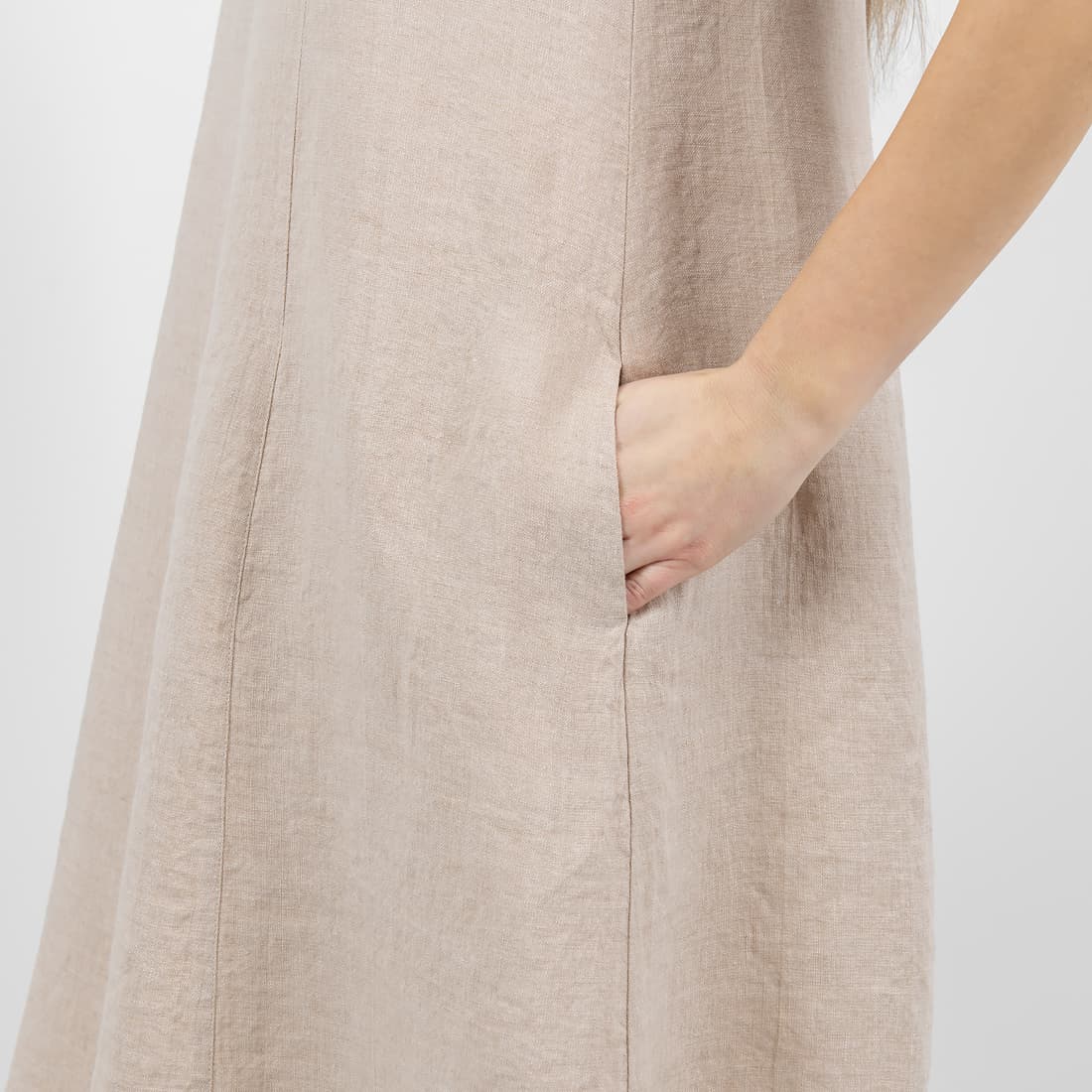 • Leinenkleid taupe in lockerer kniefreier A-Silhouette