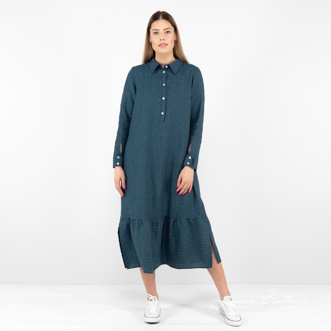 • MINDY Leinenkleid dunkelblau wadenlang