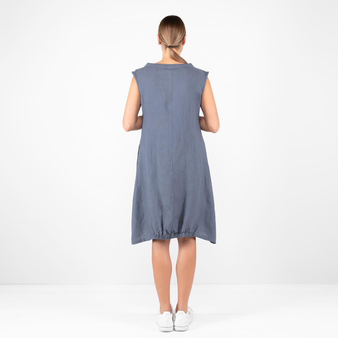 • Leinenkleid blaugrau mit Eingrifftaschen