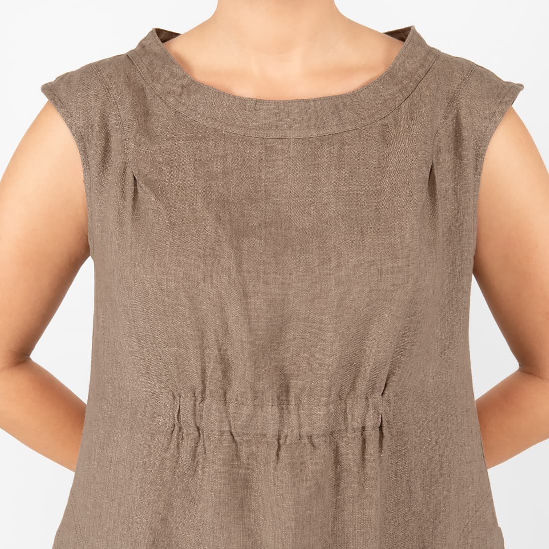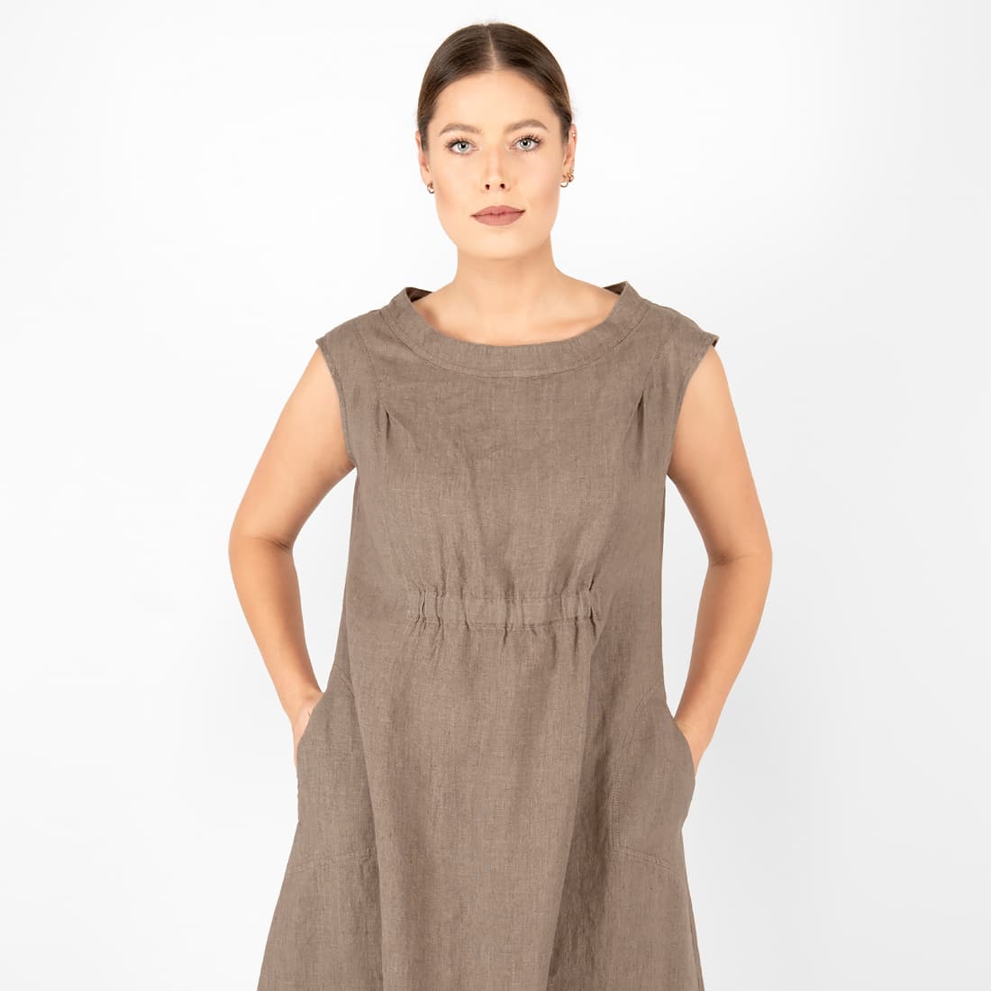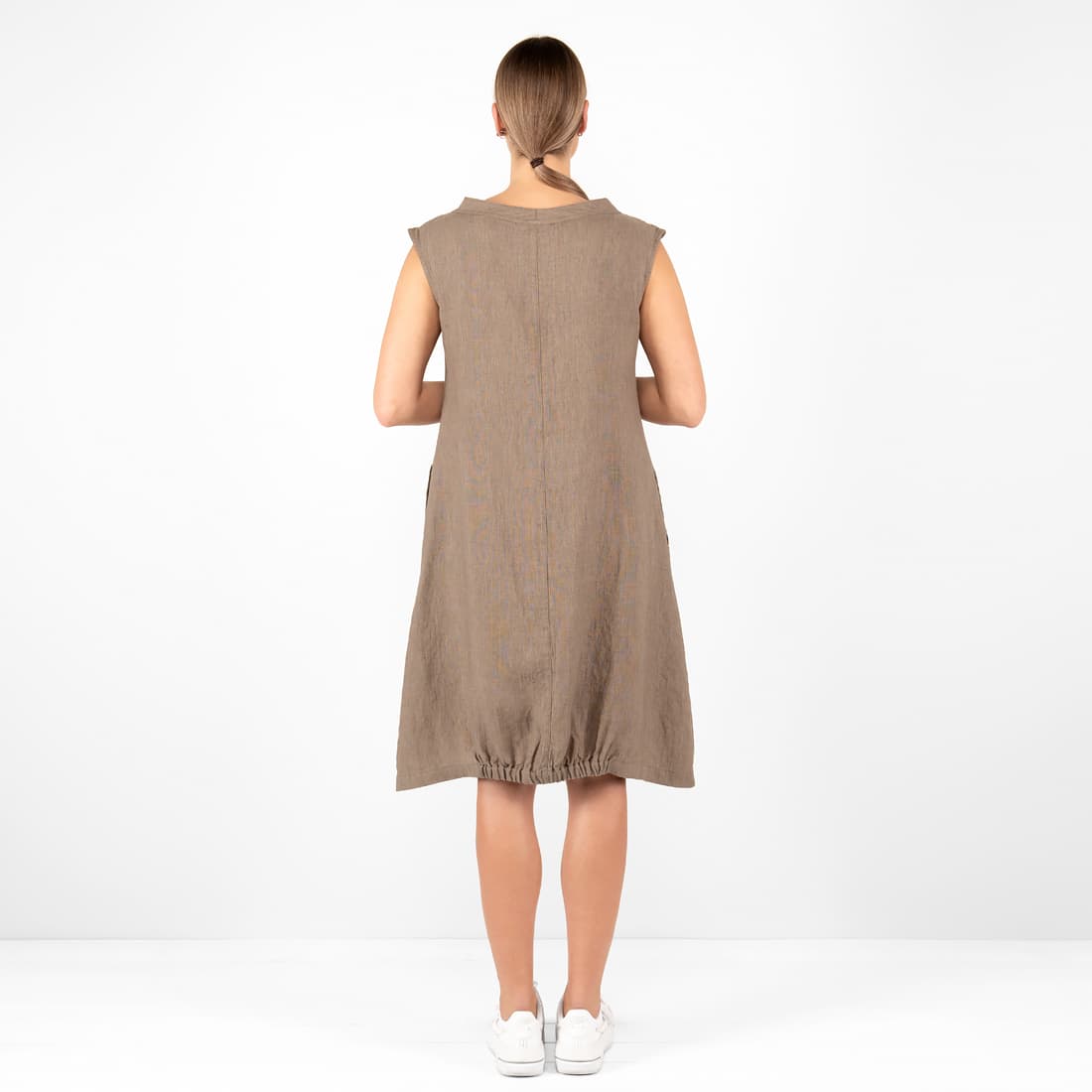 • Leinenkleid braun knielang, ärmellos