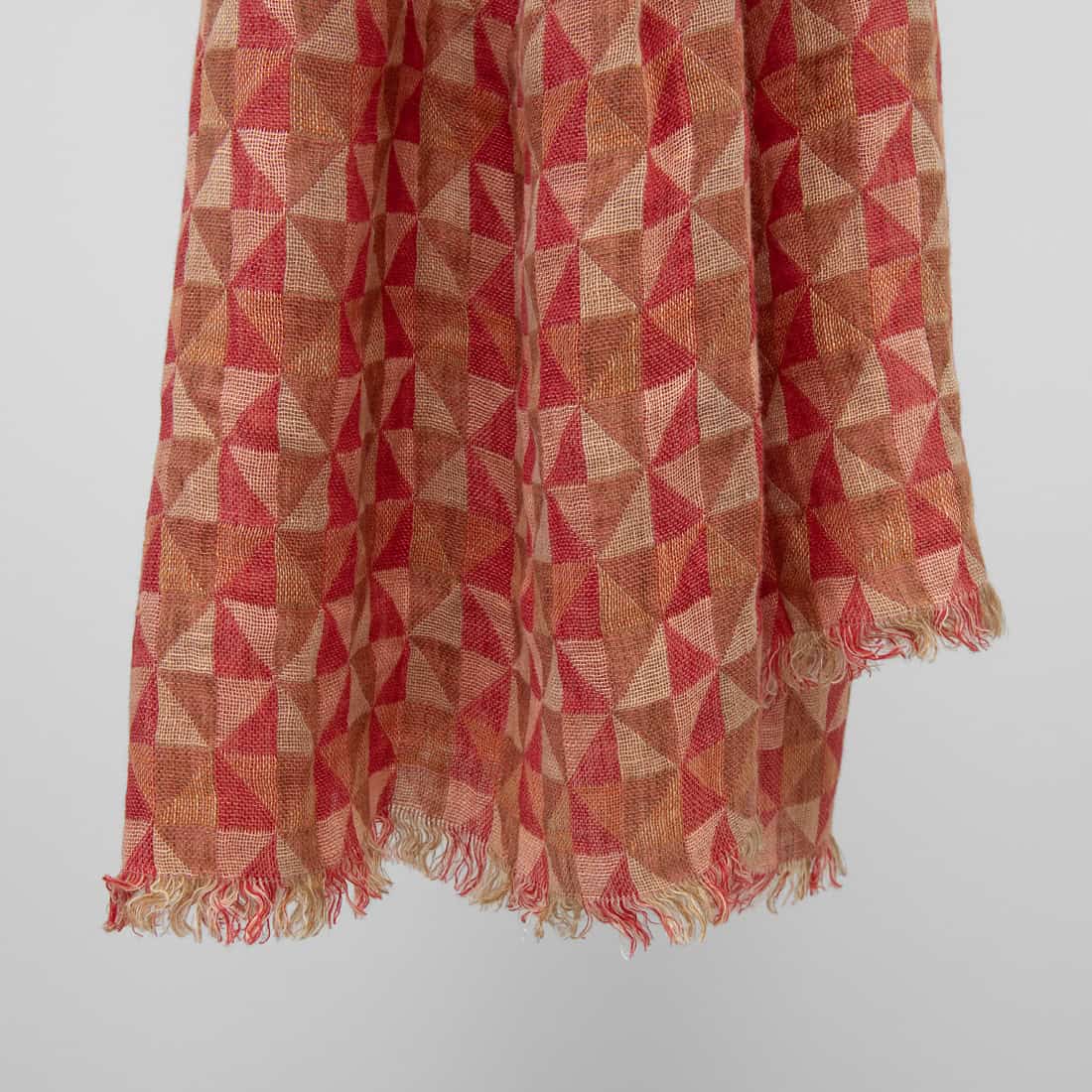 - Farbe: intensiv rotes, puderbraunes, zimtbraunes, gelblichbraunes, pfirsichfarbenes, elfenbein, altrosa und braunoranges Garn zusammengewebt