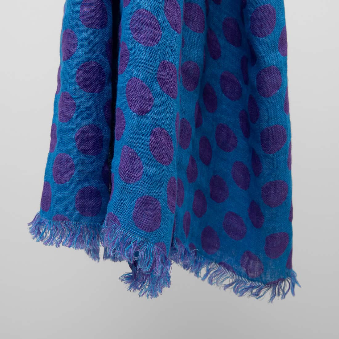 - Farbe: lichtblaues und blauviolettes Garn zusammengewebt