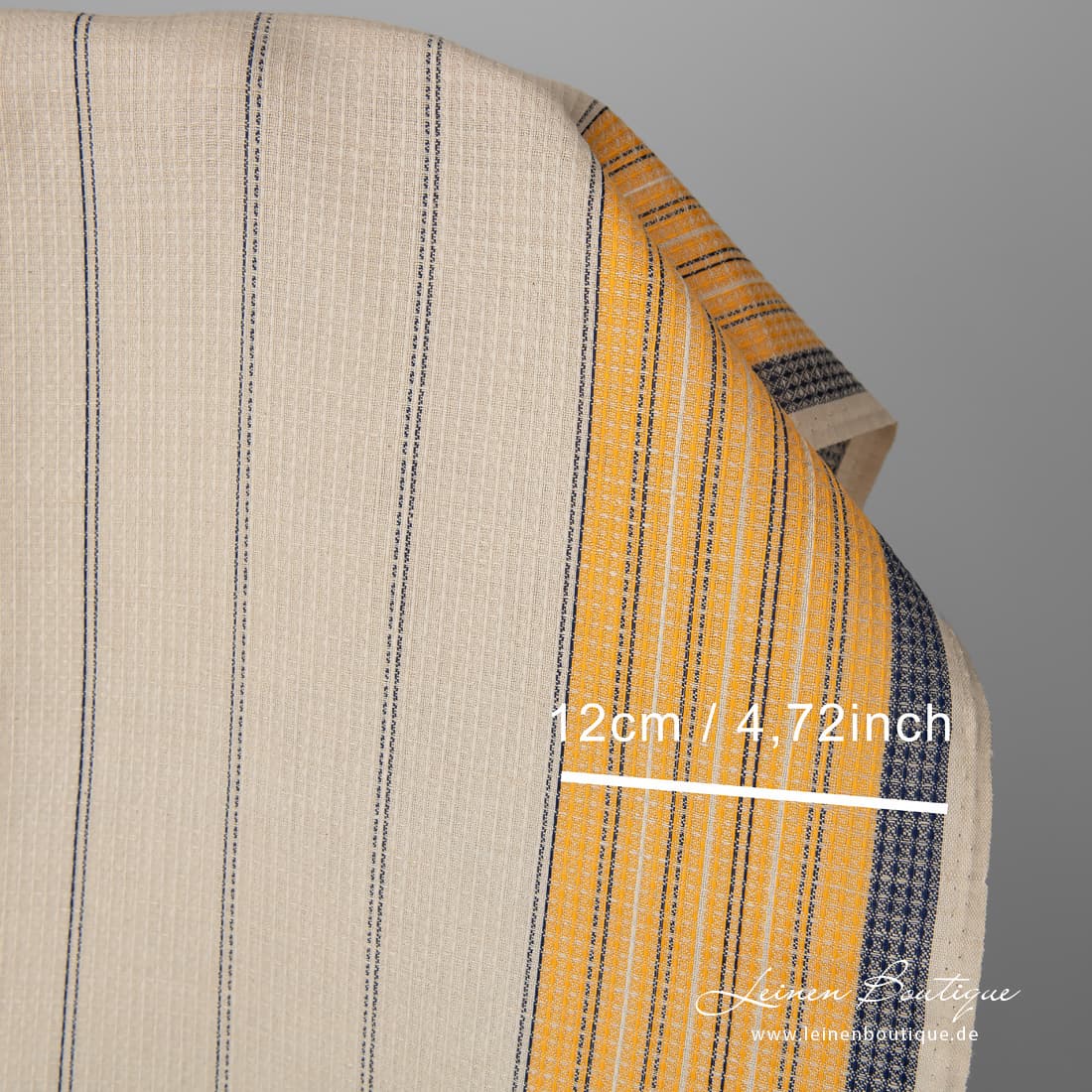 - Farbe: beiges (graubräunliches), weißes, gelbes und dunkelblaues Garn zusammengewebt