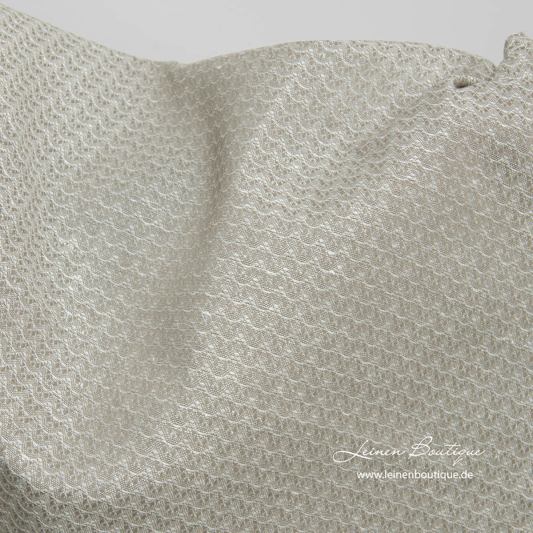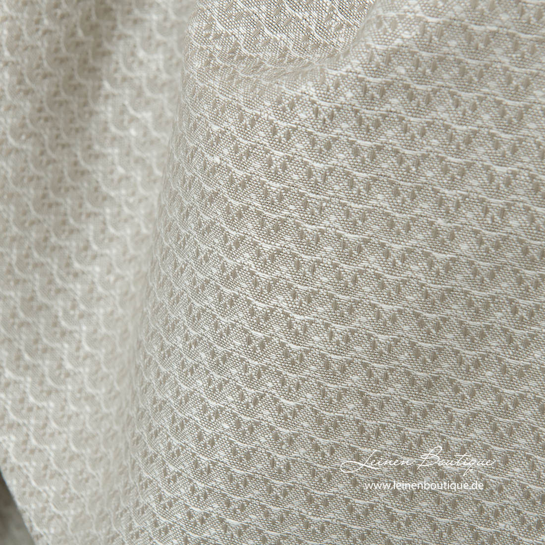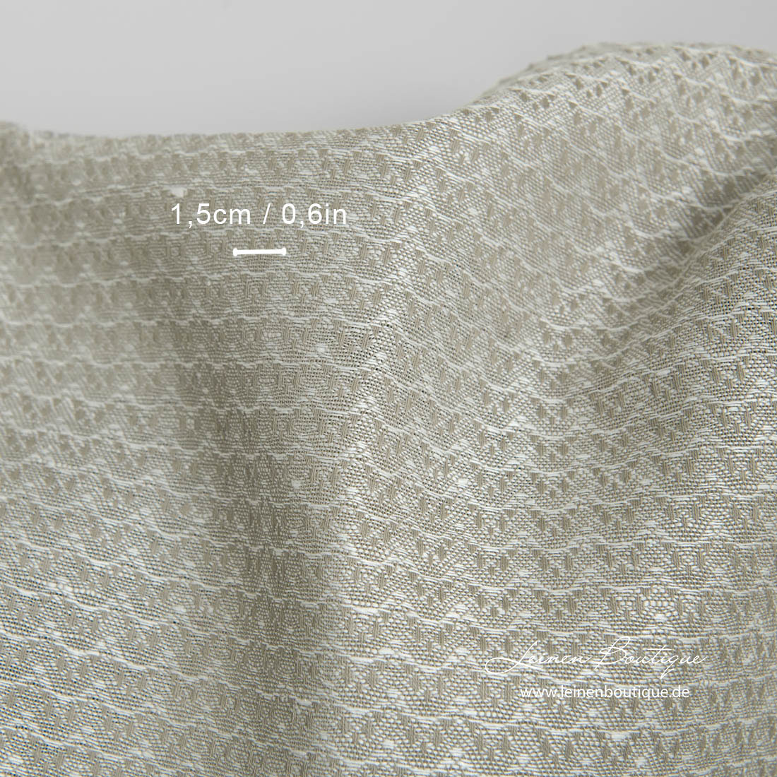 Graues Halbleinen mit Wellenmotiv, das wir aus bräunlichgrauen Baumwoll- und milchweißen Leinengarnen gewebt haben, ist reißfest, dicht, mitteldick, robust. Subtiler und dekorativer Leinen-Baumwollmix in neutralen Farben für viele Heimtextilien und Bekleidung.