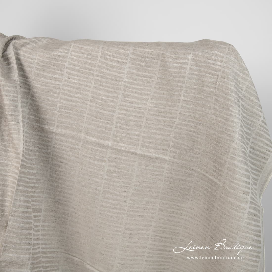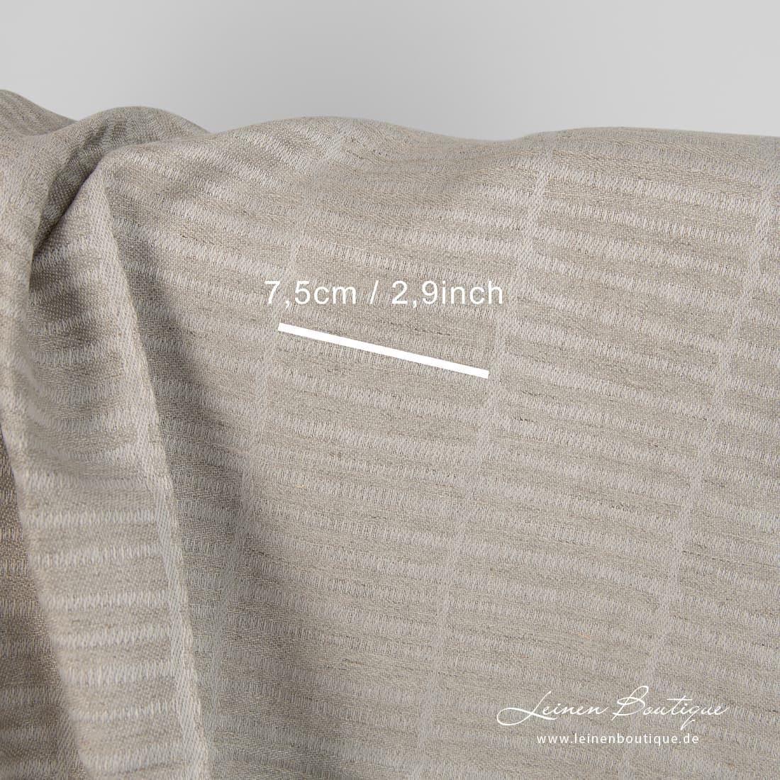 Bemerkung: Für diesen Stoff haben wir natürliches, ungefärbtes (naturgraues) Leinengarn verwendet. Die Farbe Naturgrau kann jedes Mal anders sein (Das hängt von Anbaubedingungen des Flachses ab.), deshalb kann Ihr bestellter Stoff vom Foto etwas abweichen. Bei einer Nachbestellung kann es hier auch zu Farbabweichungen kommen.