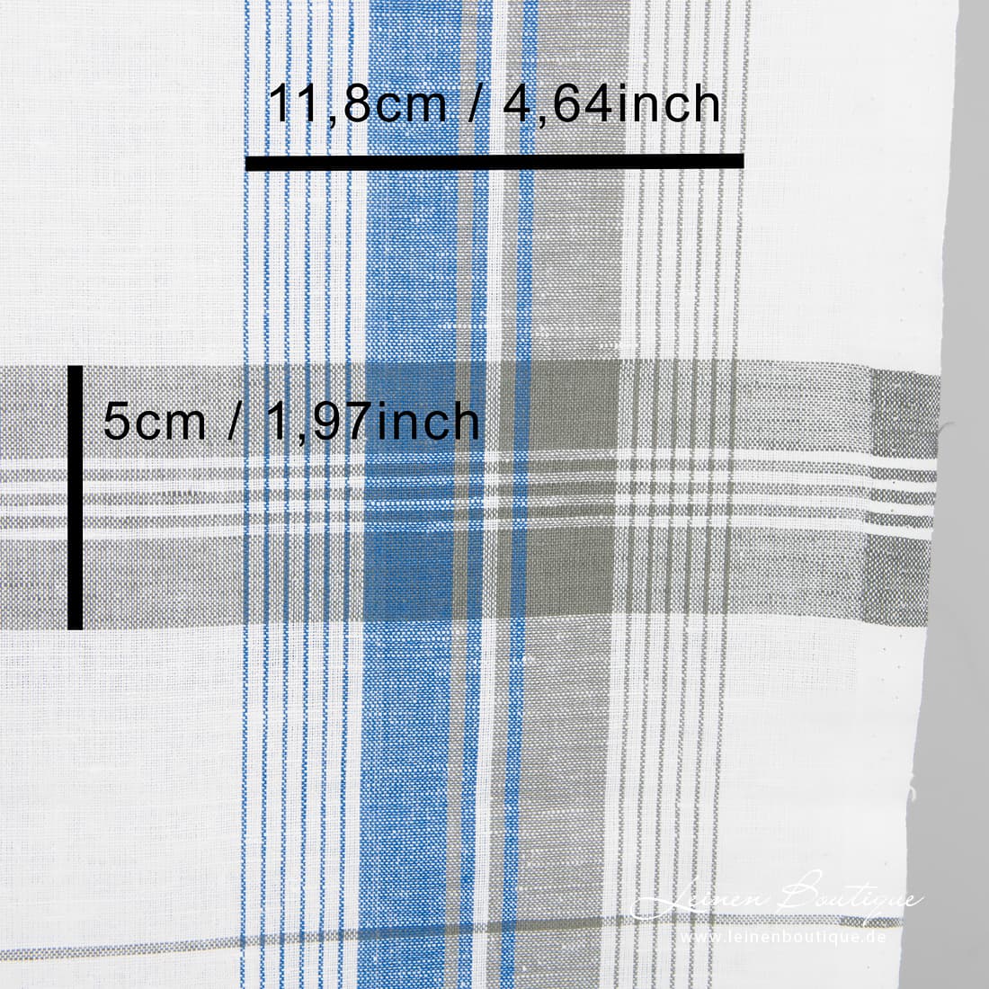 - Farbe: schneeweißes, grünlichgraues und blaues Garn zusammengewebt