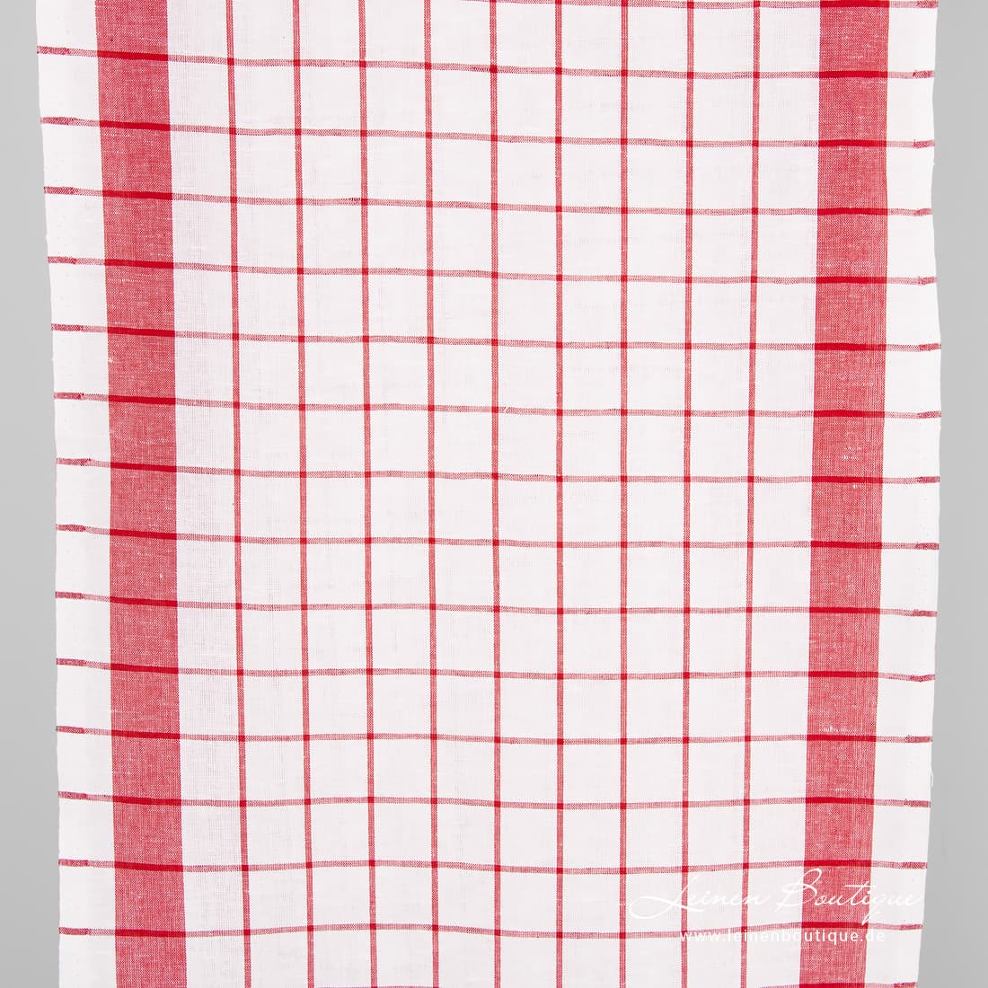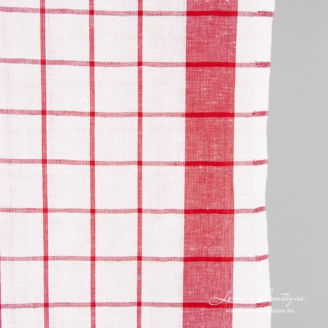 • Küchentücherstoff aus Leinen-Baumwollmix aus schneeweißem und rotem Garn gewebt