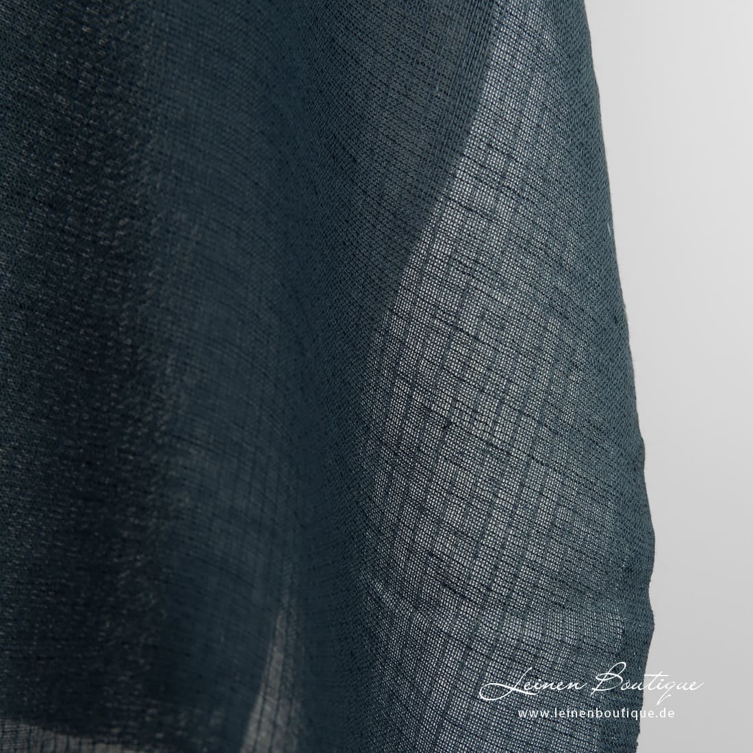 • Dunkelblaues transparentes Halbleinen mit vertikalen Streifen
