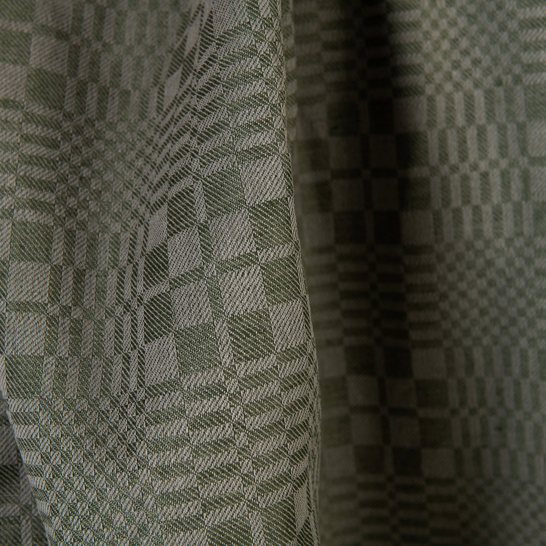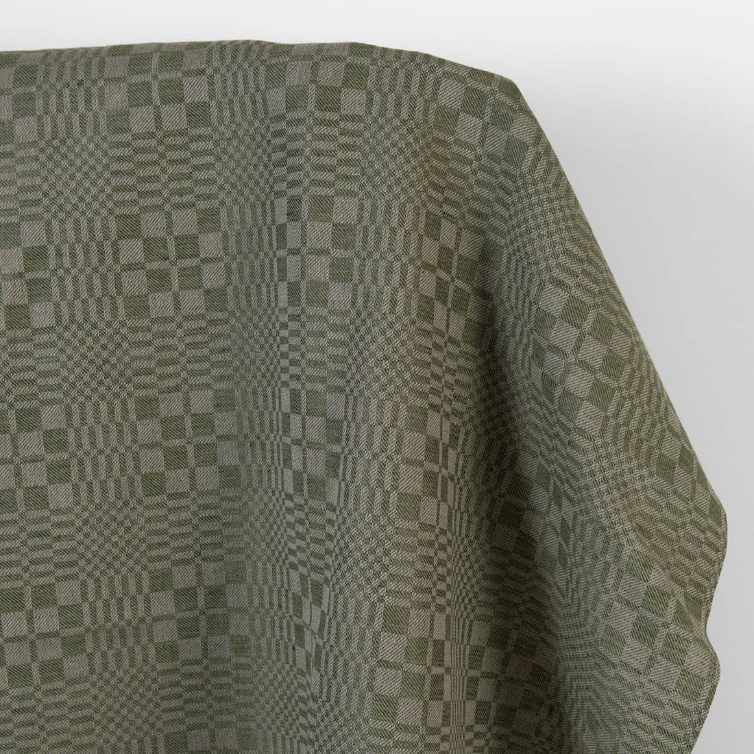 Leinen-Baumwollstoff mit grünen und beigen Karos