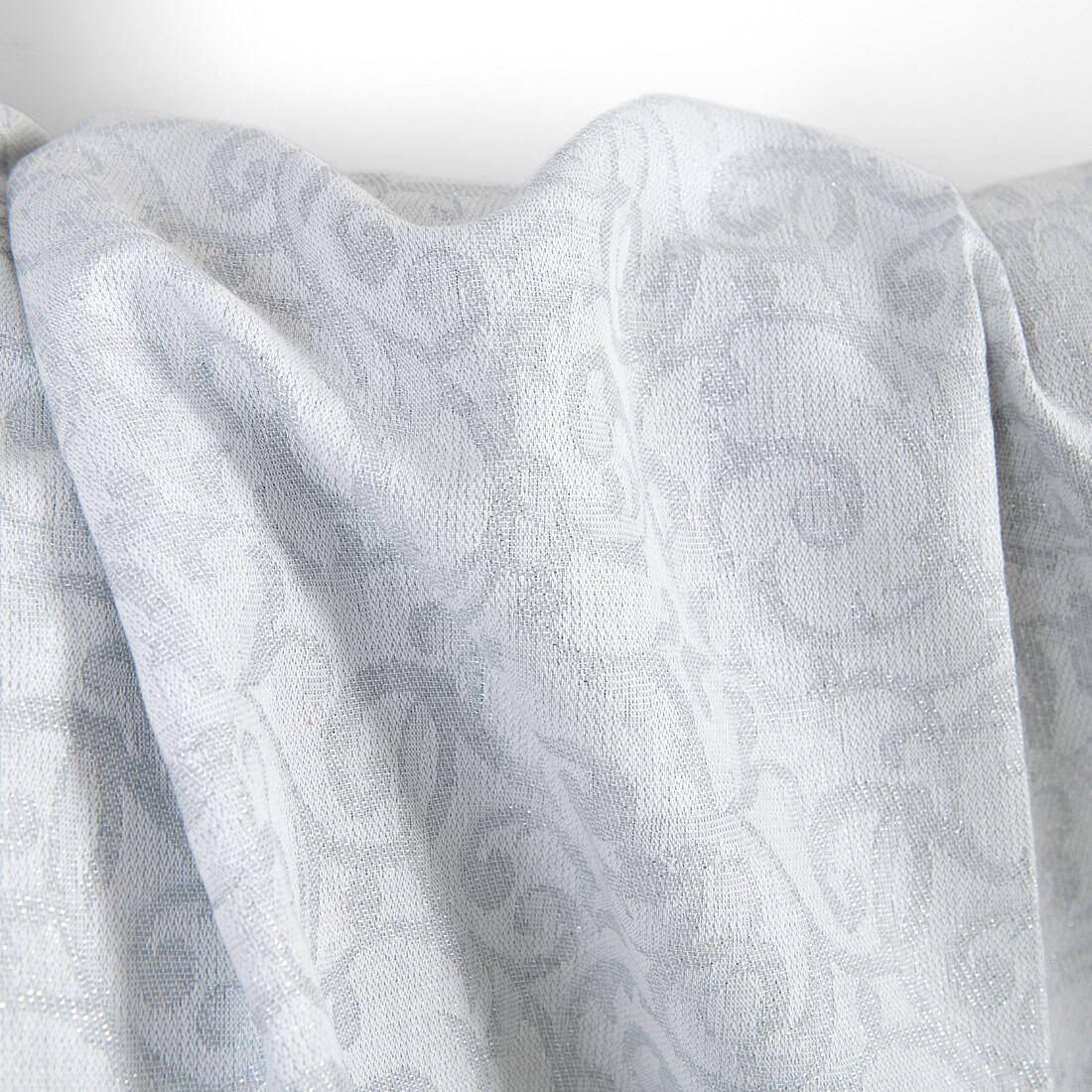 - Farbe: strahlend weiße, hellgraue und metallisch-silberne „Lurex“ Garne sind miteinander verwoben
