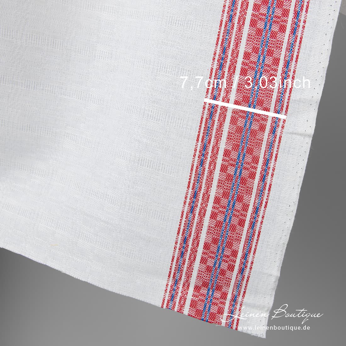 - Farbe: schneeweißes, rotes und dunkelblaues Garn zusammengewebt