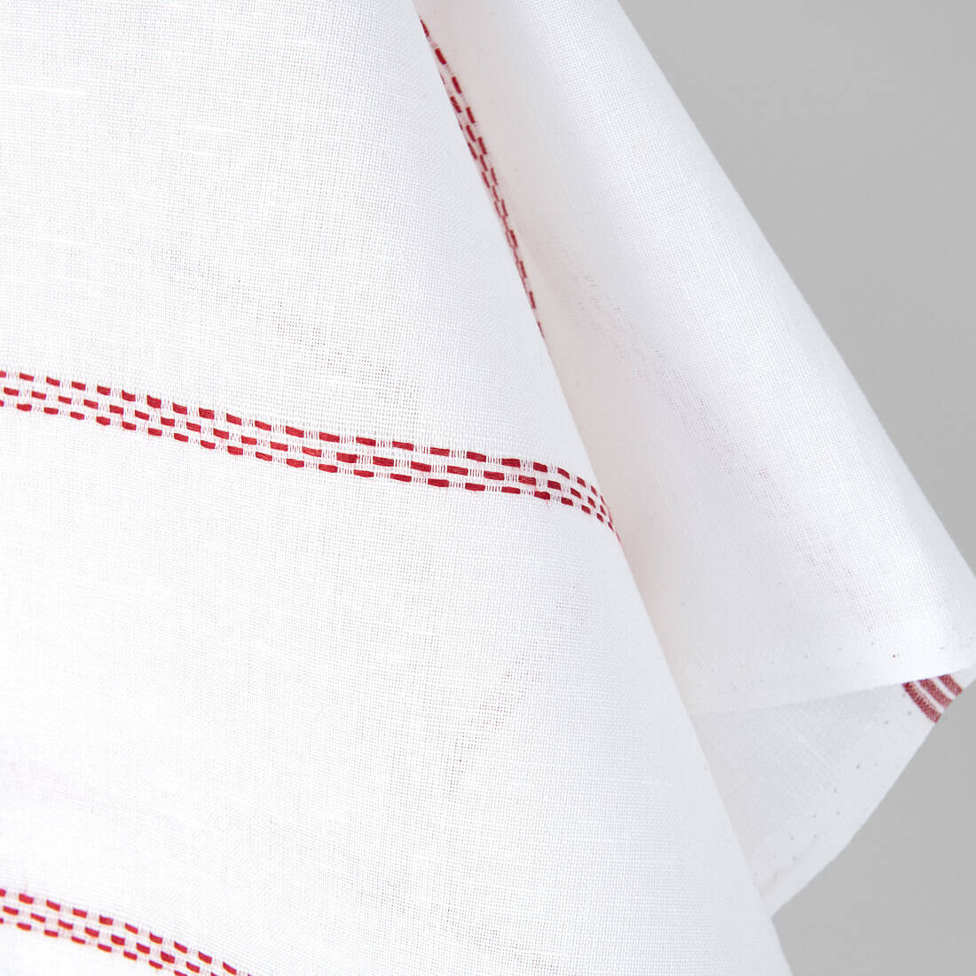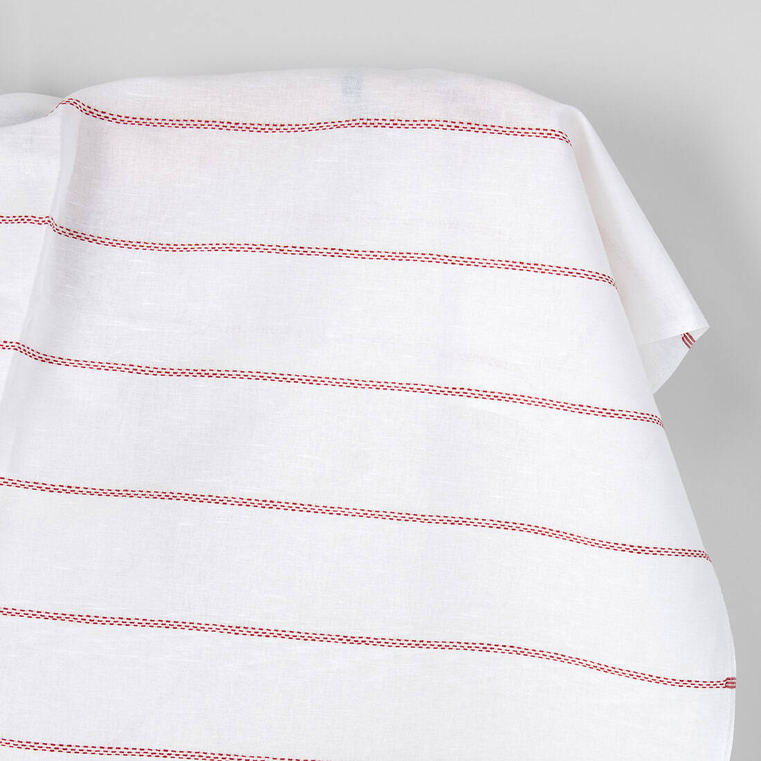 • Weißer Leinen-Baumwollstoff mit roten Streifchen