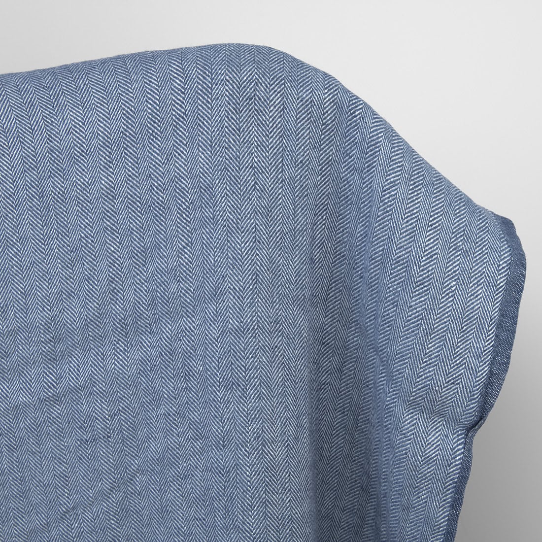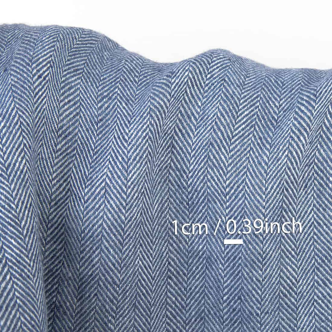 Leinenstoff mit Fischgratmuster in Blau und Weiß ist leicht, dicht, weich. Der Stoff wurde industriell vorgewaschen, deshalb werden Ihre Kleider, Tagesdecken oder Gardinen aus diesem Stoff nicht mehr schrumpfen.