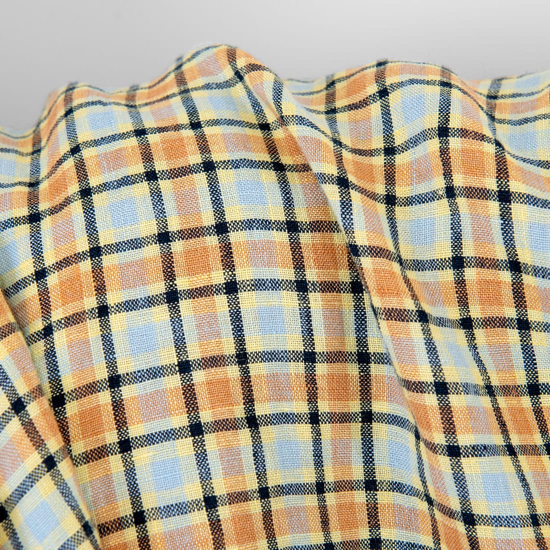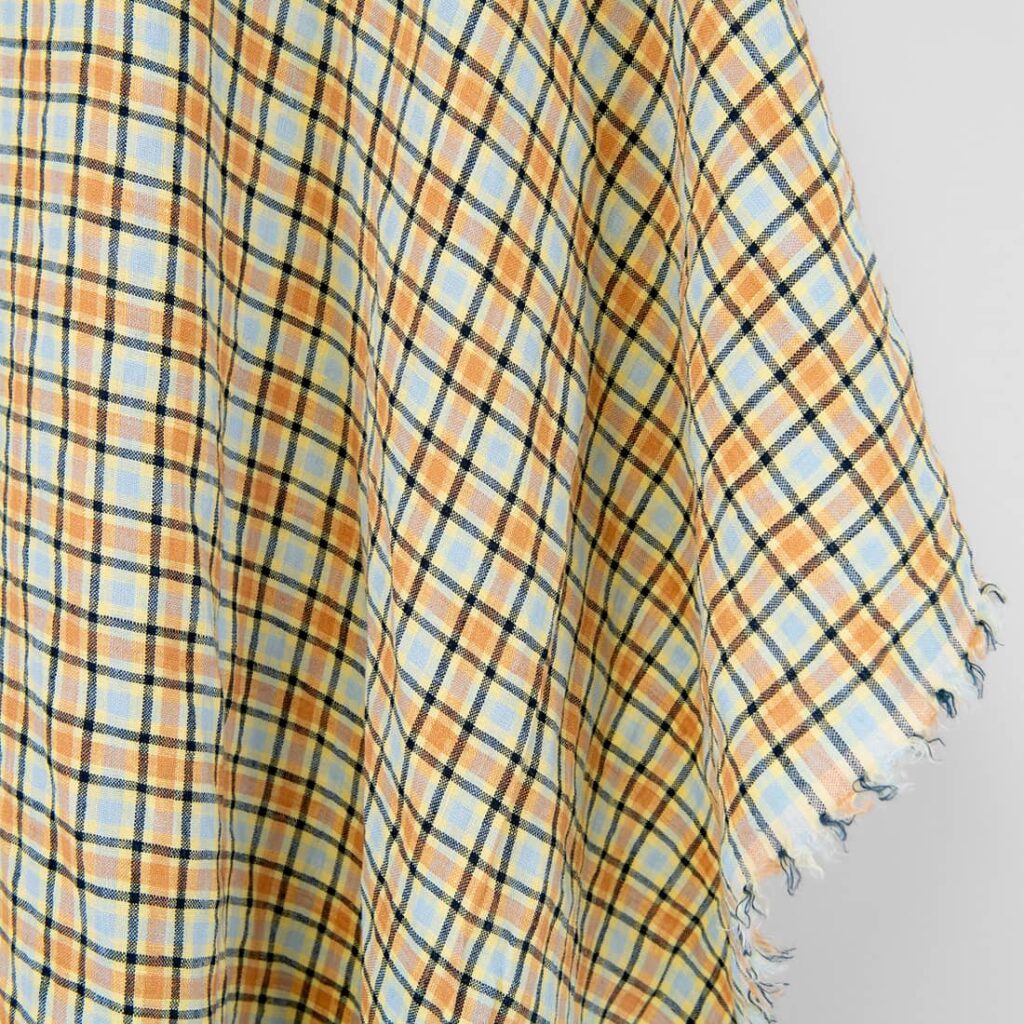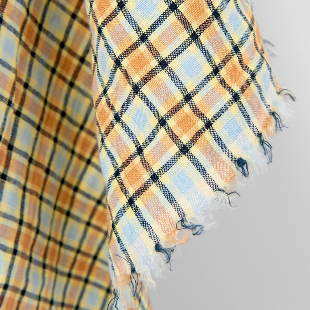 - Farbe: eine Mischung aus hellgelben, hellblauen, blauschwarzen und terrakottafarbenen Garnen
