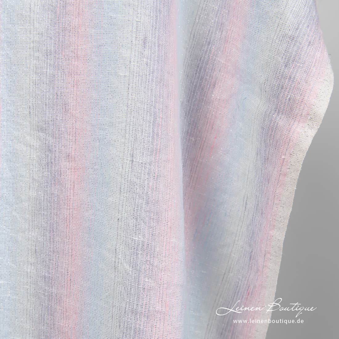 - Farbe: rosa, grauviolettes, mintgrünes, hellblaues, weißes Leinengarn und silberfarbene Polyesterfaden zusammengewebt