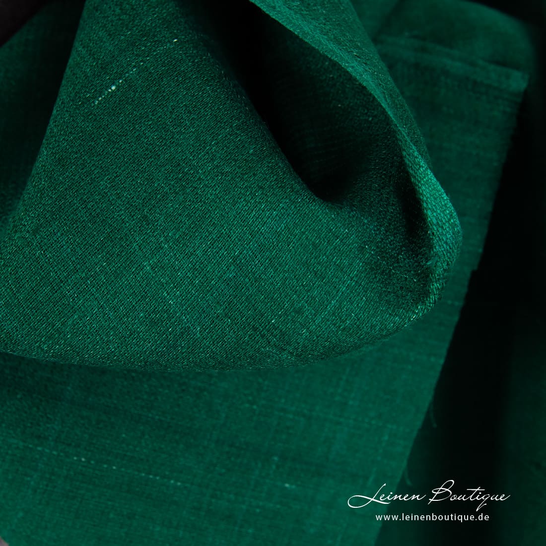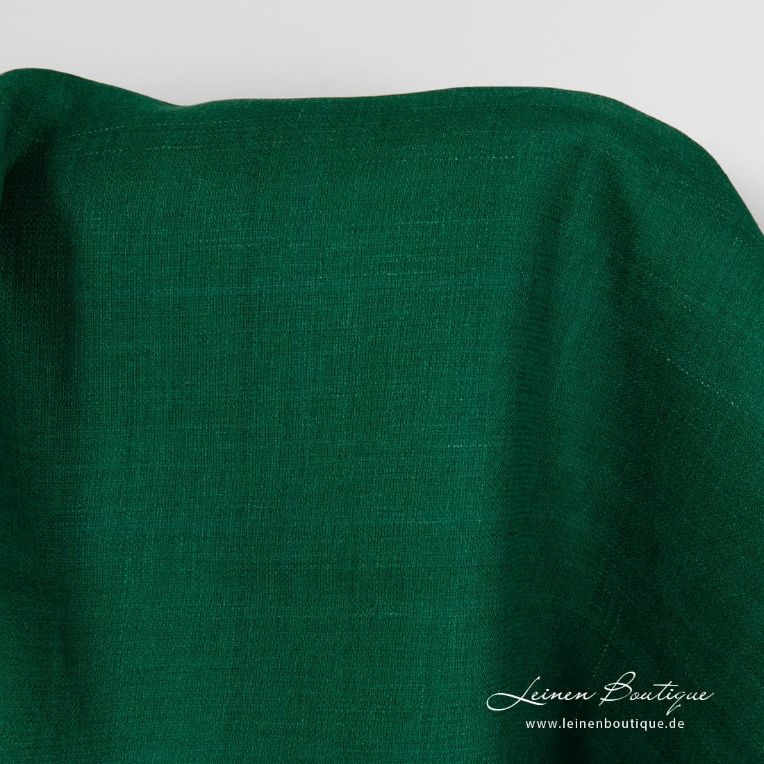 Grüner Leinenstoff mit weißen Streifen aus Polyestergarn, die im Stoff unregelmäßig eingewebt wurden. Reißfester, dichter, mitteldicker Stoff zum Nähen von Bekleidung und Heimtextilien. Jetzt zu günstigem Preis!