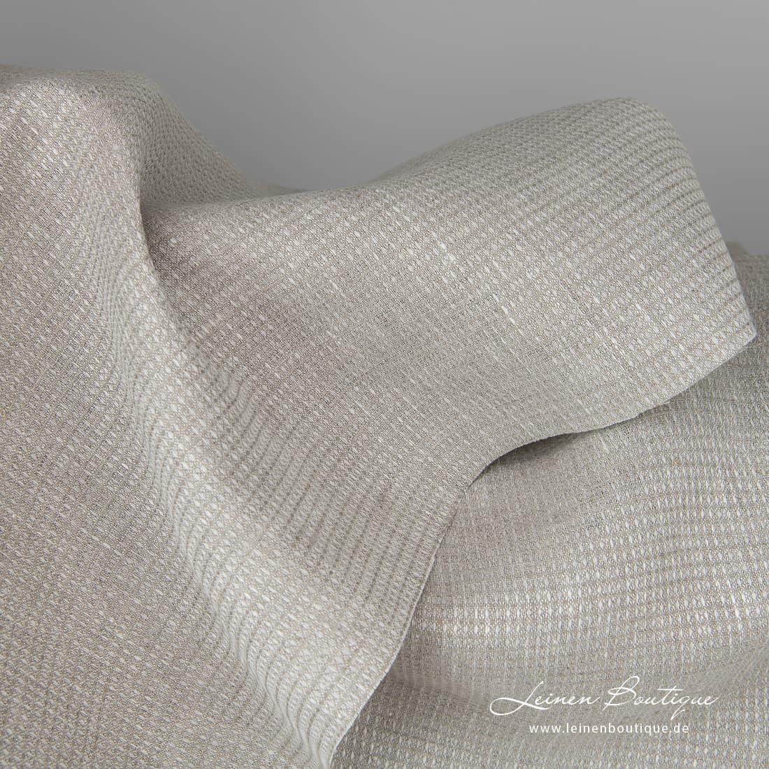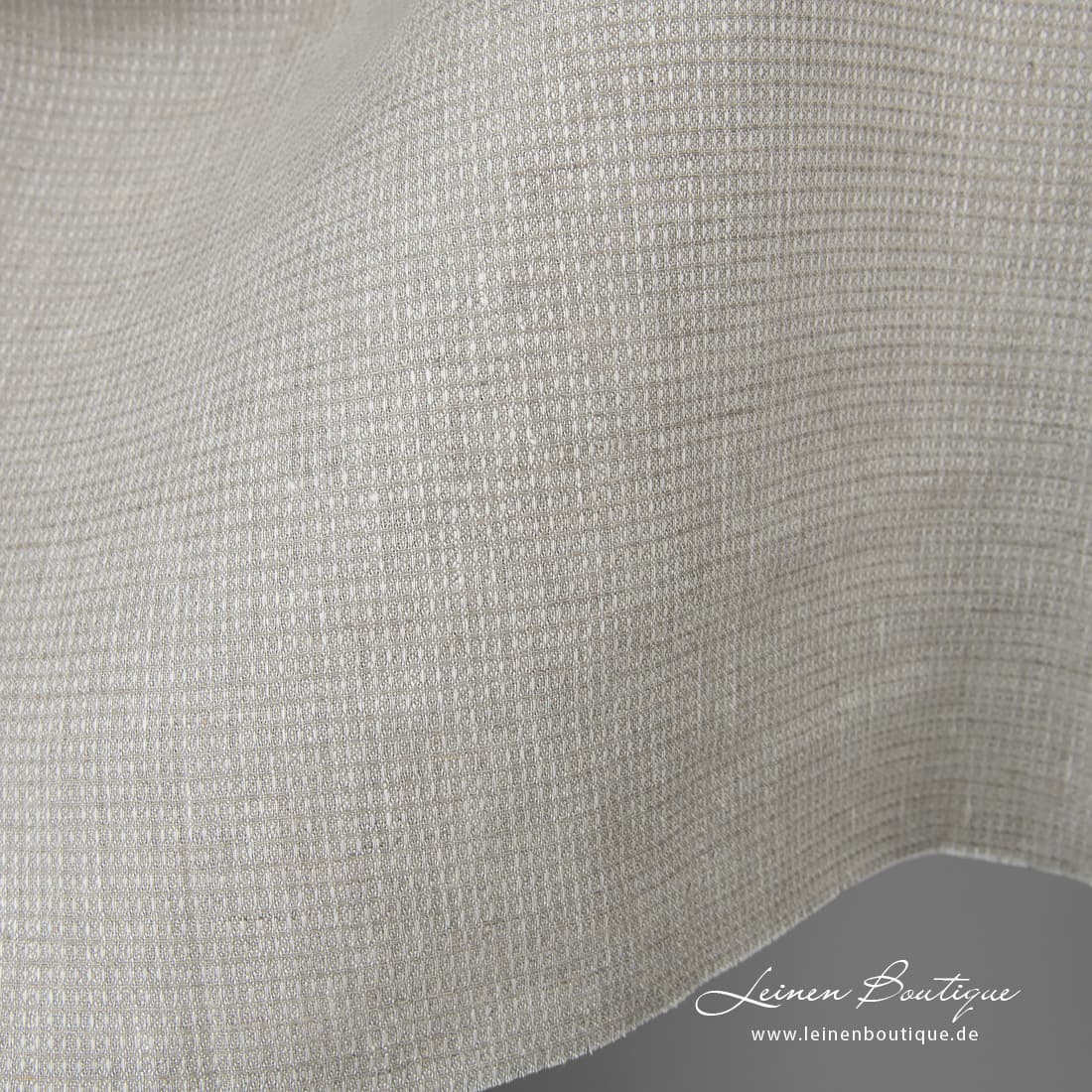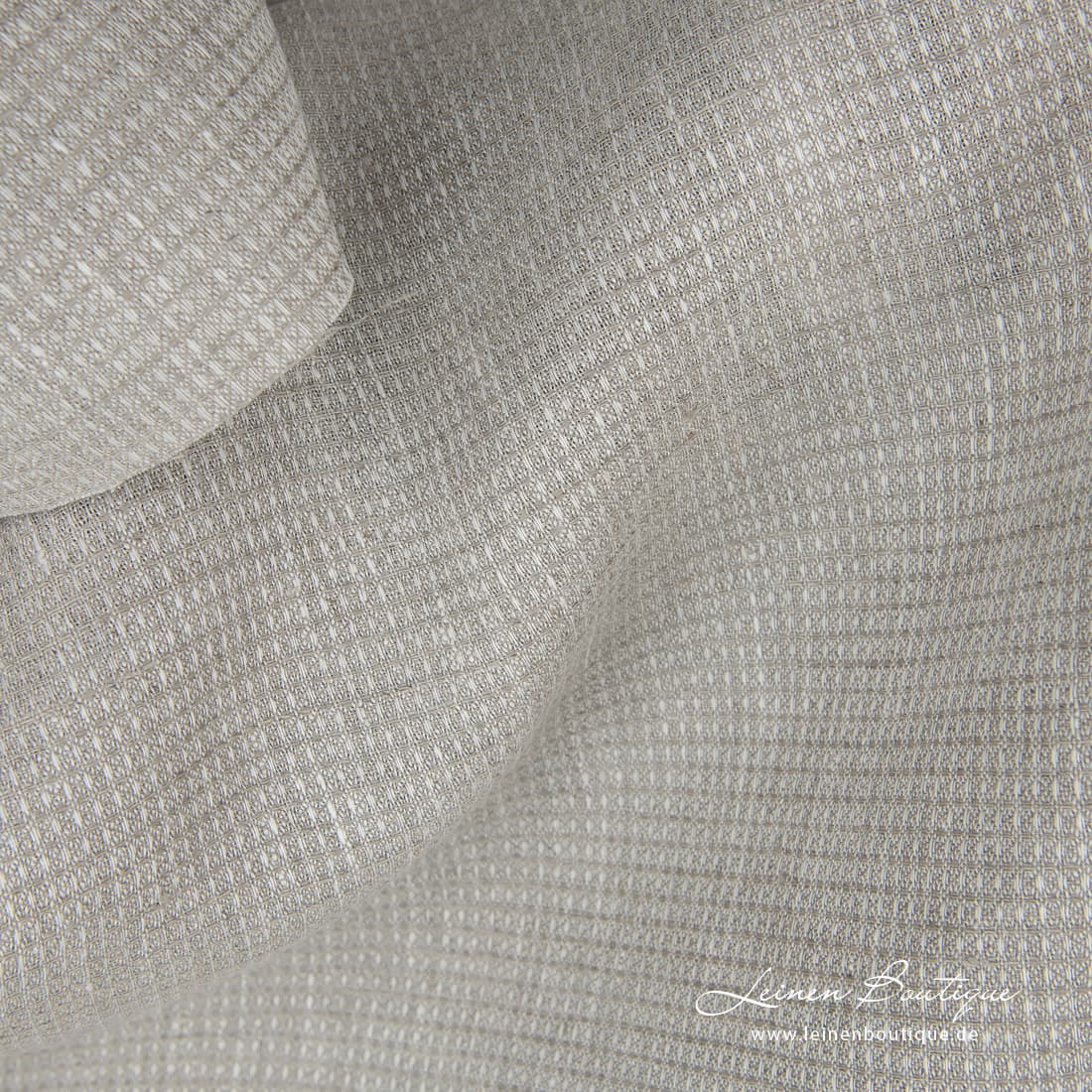 Bemerkung: Für diesen Stoff haben wir natürliches, ungefärbtes (naturgraues) Leinengarn verwendet. Die Farbe Naturgrau kann jedes Mal anders sein (Das hängt von Anbaubedingungen des Flachses ab.), deshalb kann Ihr bestellter Stoff vom Foto etwas abweichen. Bei einer Nachbestellung kann es hier auch zu Farbabweichungen kommen.