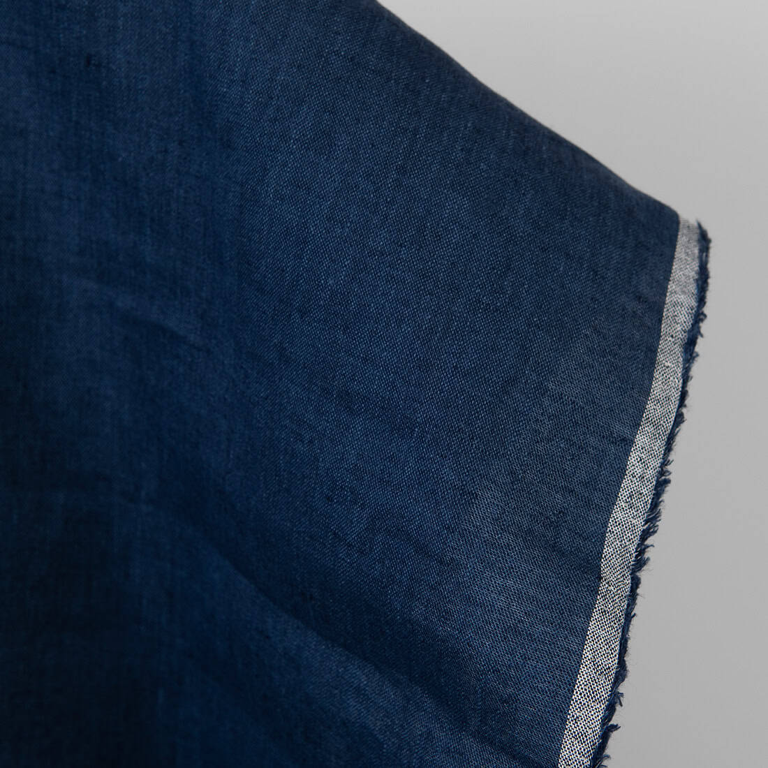 • Jeansblau melierter Leinenstoff zum Nähen von Kleidung und Heimtextilien geeignet