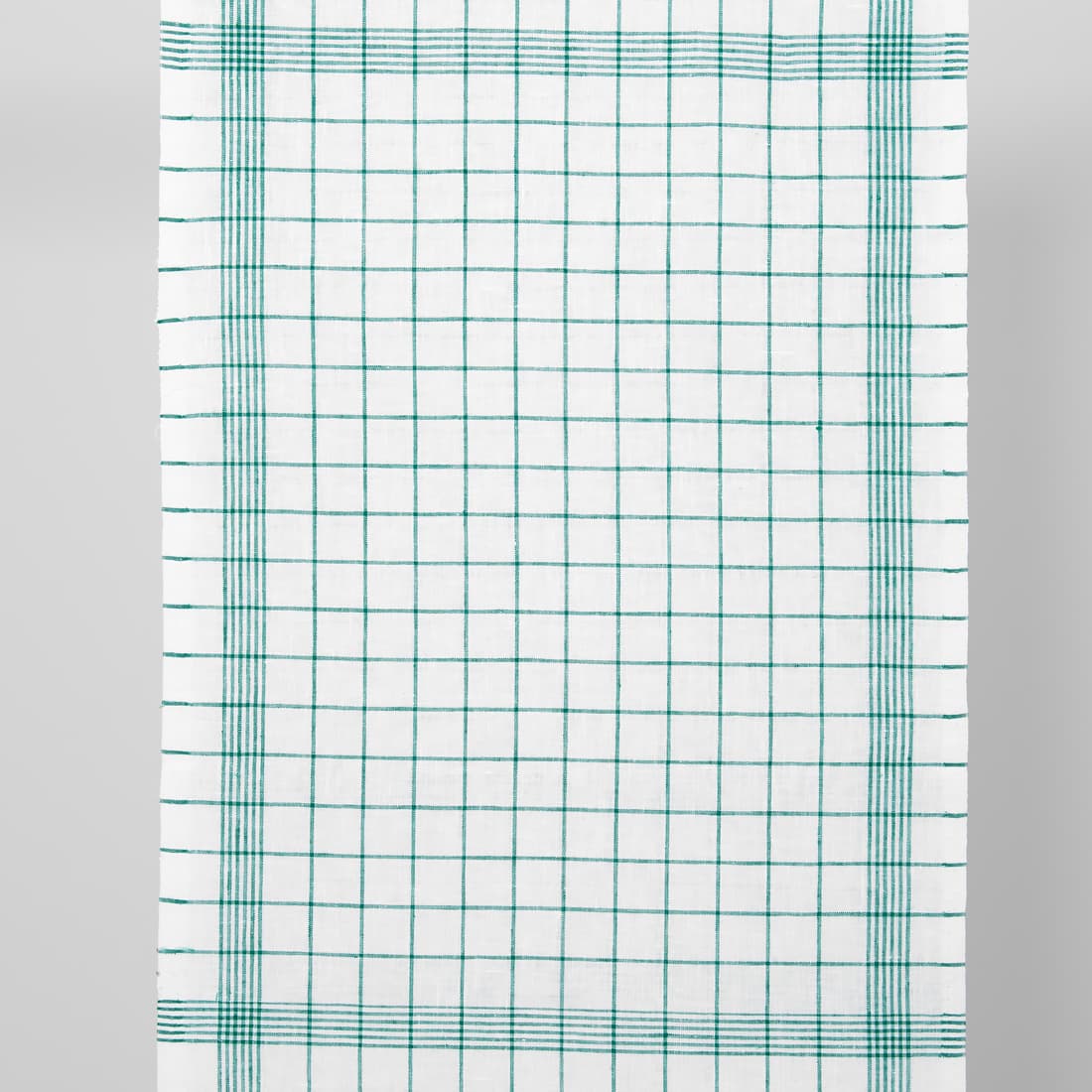 Leinen-Küchentücherstoff weiß mit kräftig grünen Karos