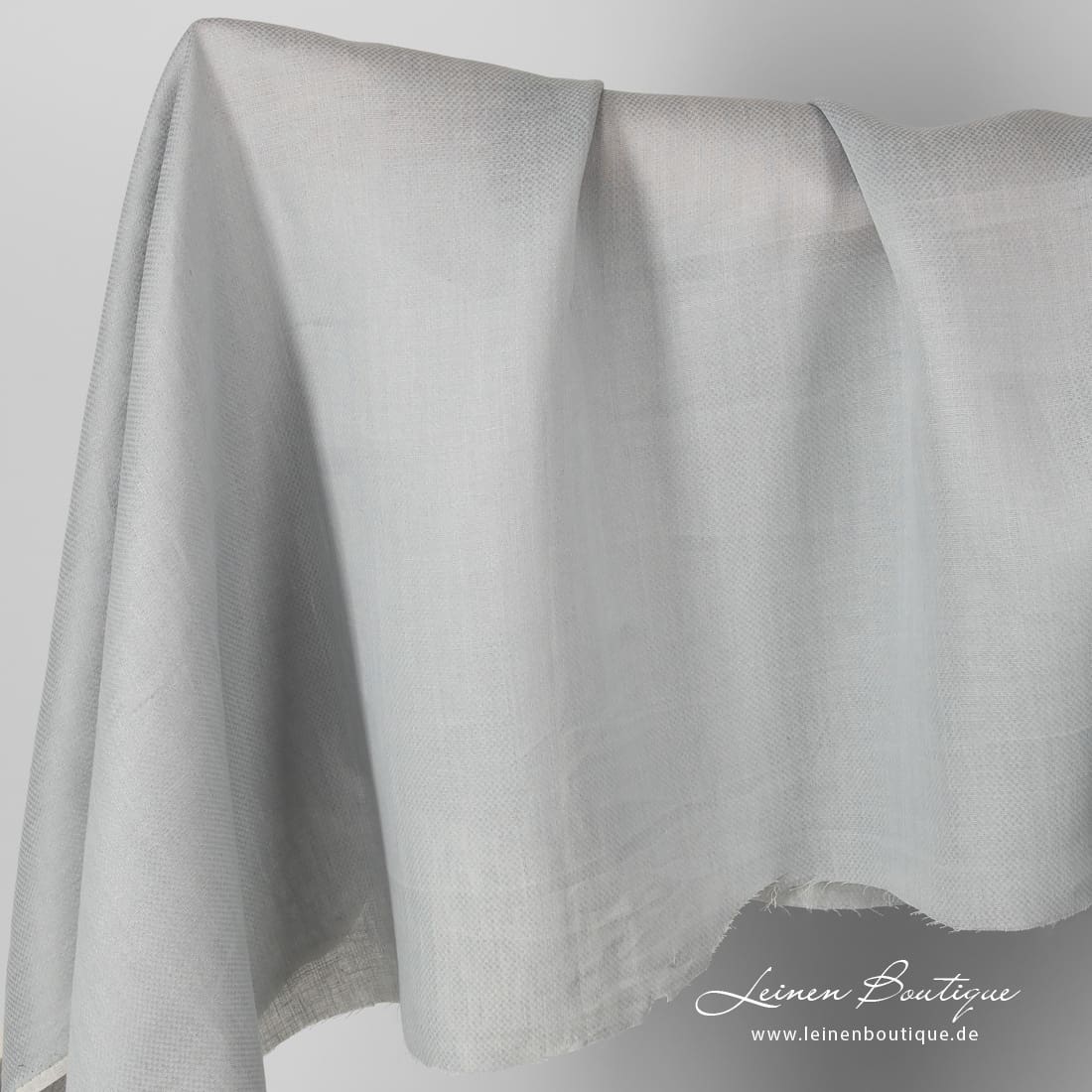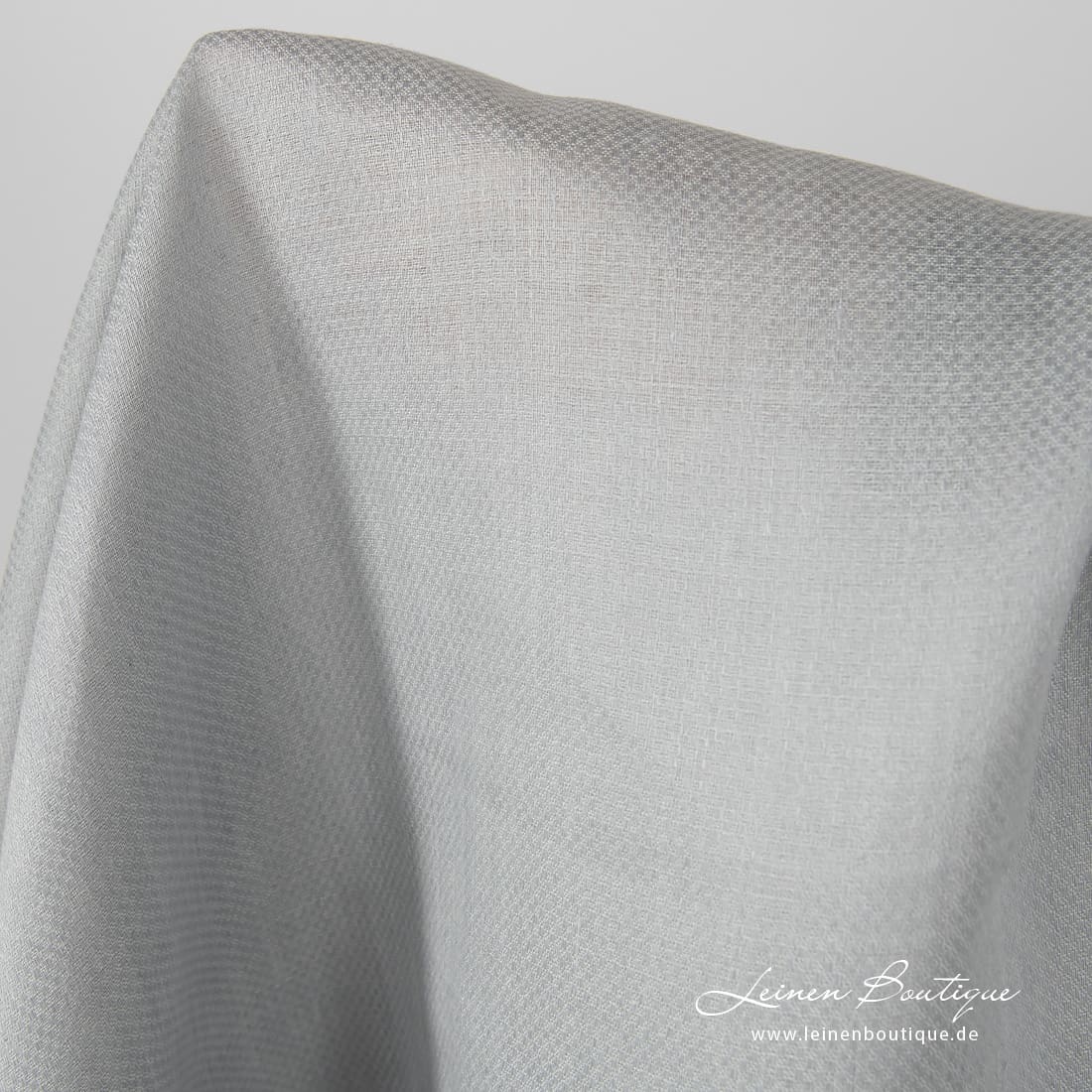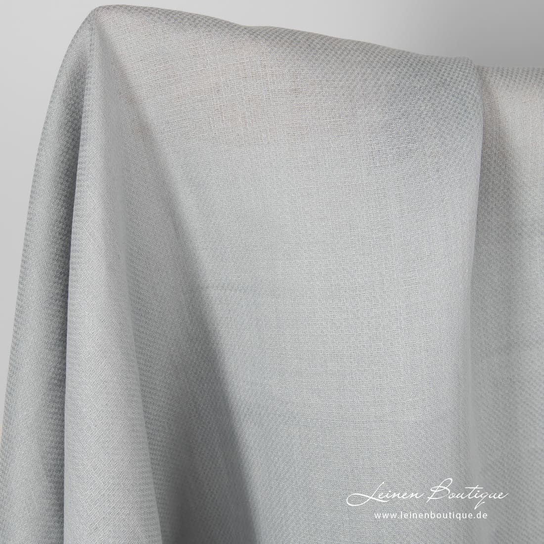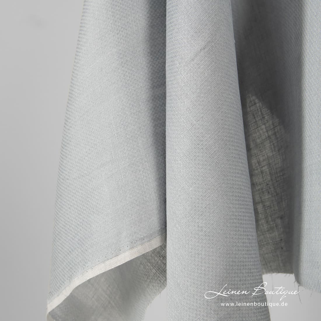 Leinenstoff bläulichgrau, gemustert: in kleinen Karos aus bläulichgrauem Garn in zwei Tönen gewebt. Leicht, reißfest, dicht, zum Nähen von Bekleidung und Heimtextilien geeignet.