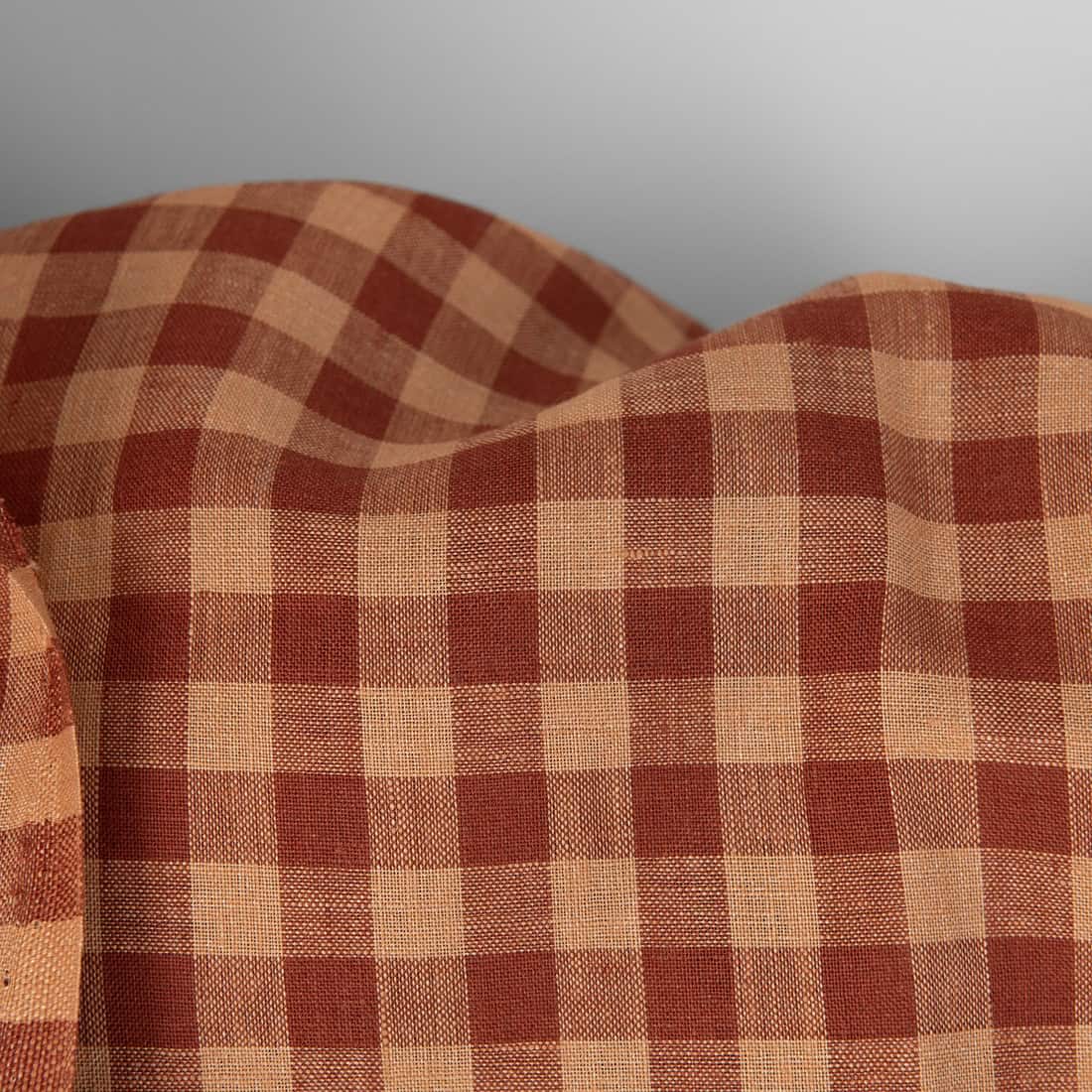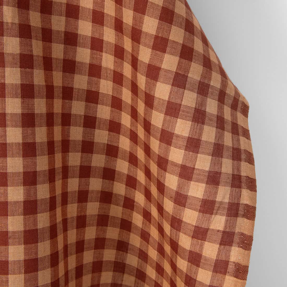 • Leinenstoff karamellbraun-braunrot kariert