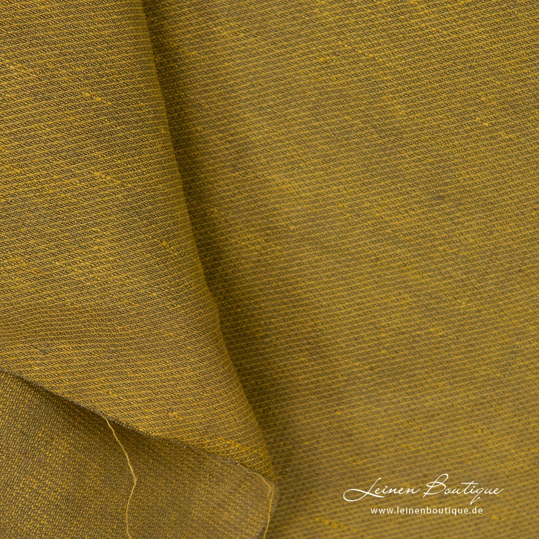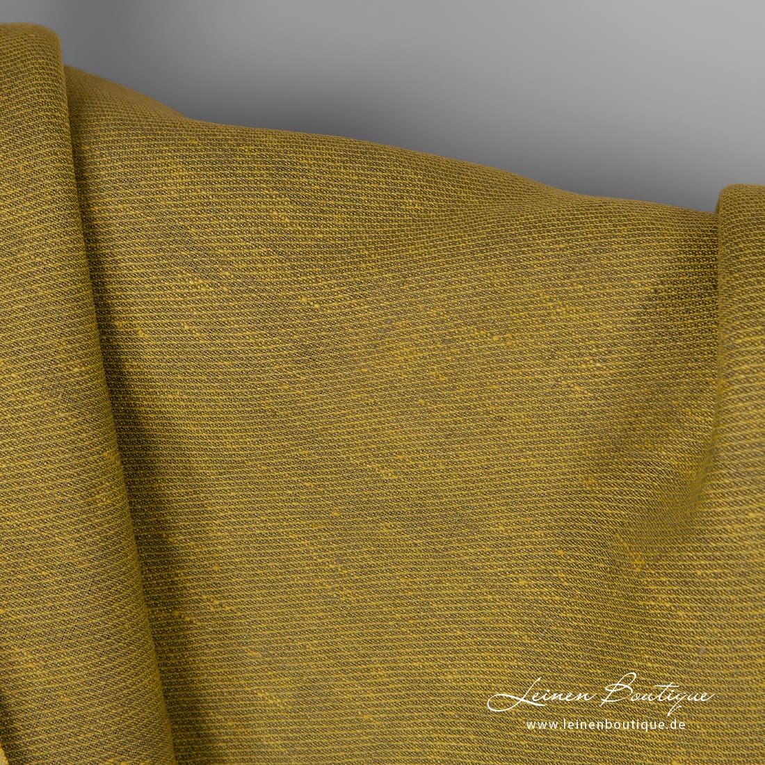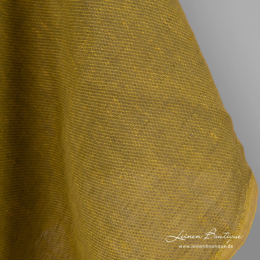 Leinenstoff gelbgrün in feinem Webmuster, wo intensiv gelbes und hellgrünes Garn kombiniert wurde, gewebt. Reißfest, dicht, mitteldick. Aus diesem Reinleinen können Sie Bekleidung und Heimtextilien nähen.