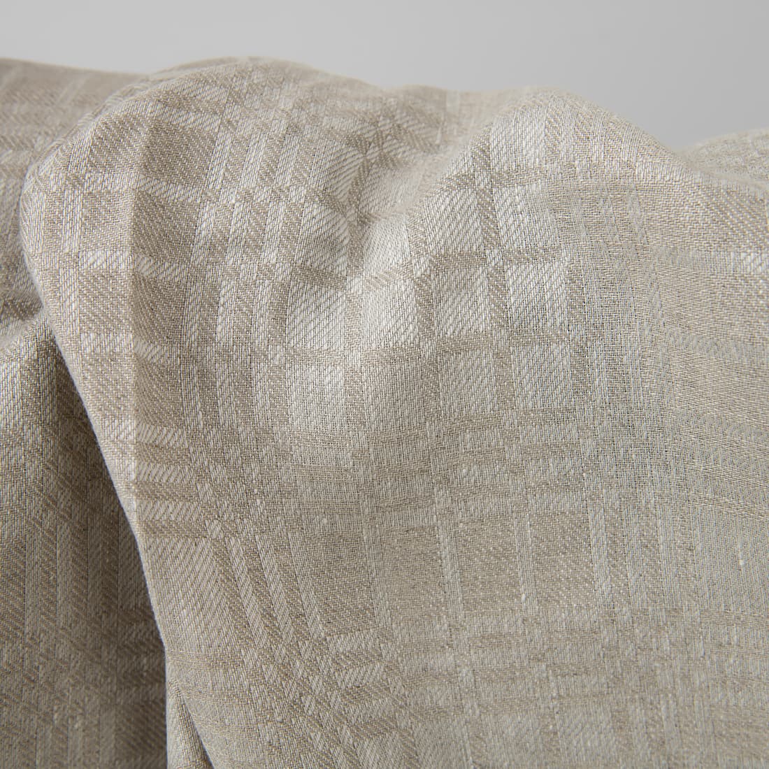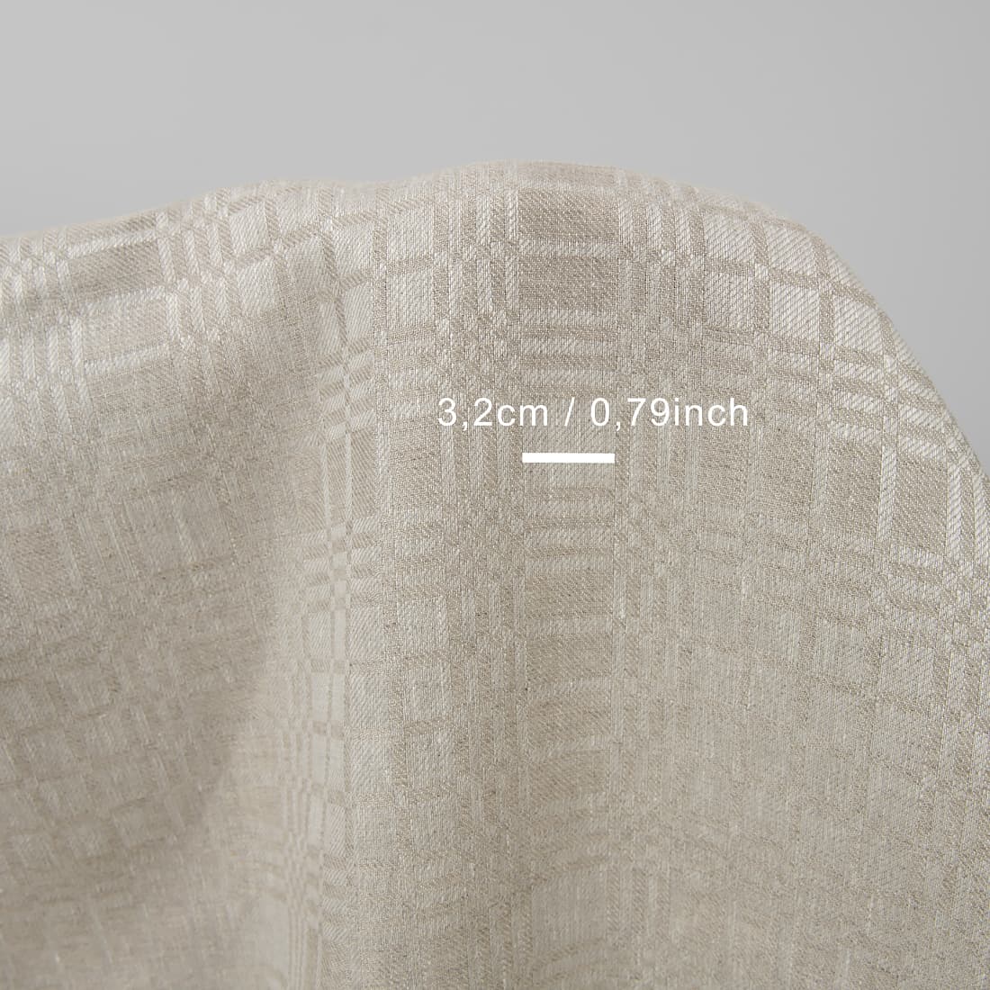 Leinenstoff, in geometrischem Motiv aus naturgrauem und weißem Garn gewebt. Reißfest, robust, mittelschwer und mitteldick.